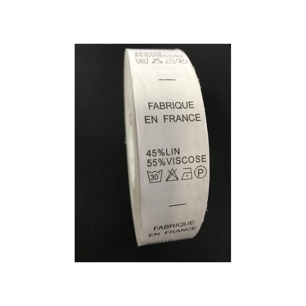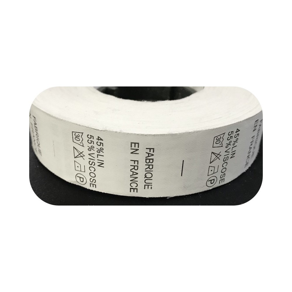 Etiquettes de vetements au mètre universelles de composition " 45 % lin Et 55 % Viscose ",