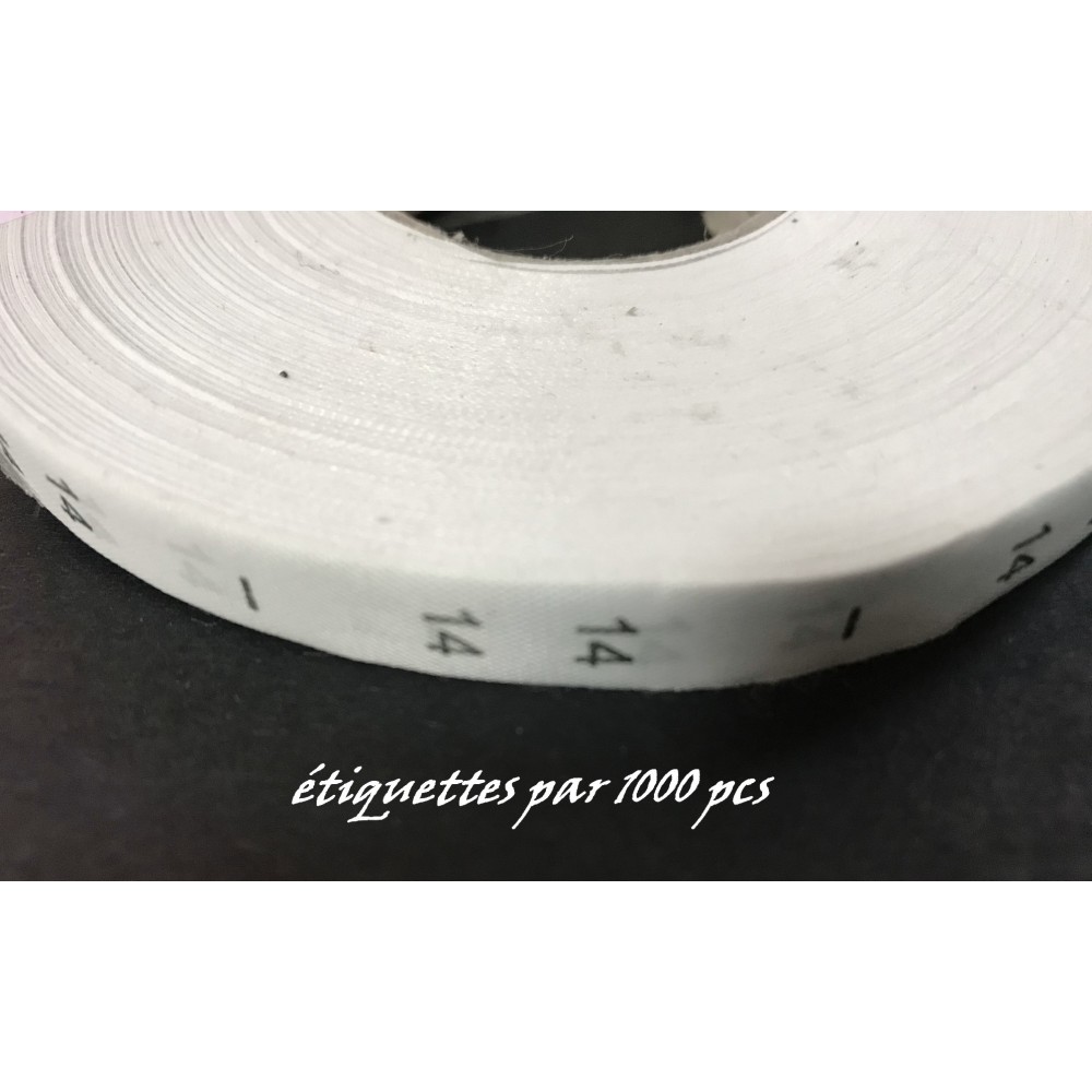 Etiquettes de vetements découpées et pretes à l'emploi, de composition textile multiple, TAILLE UNIQUE " 1 " à coudre sur les vetements.