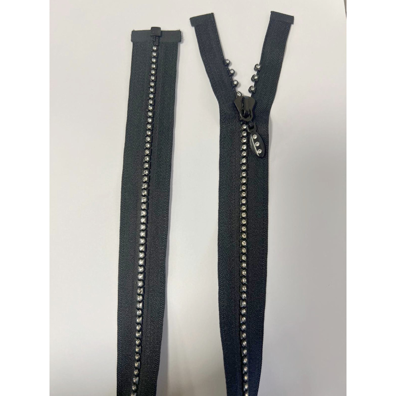 zip en simple strass en 60 cm ouvrable séparable en noir, férmeture à glissière en strass séparable en maille