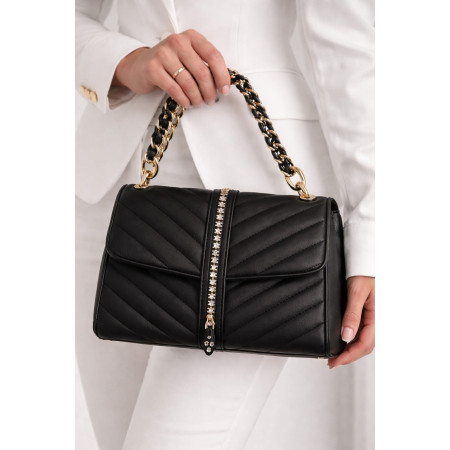 Fermeture en double strass noir, fixe.