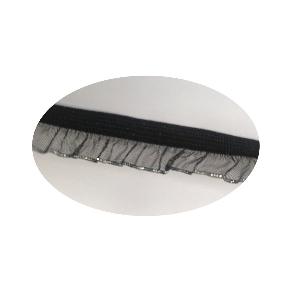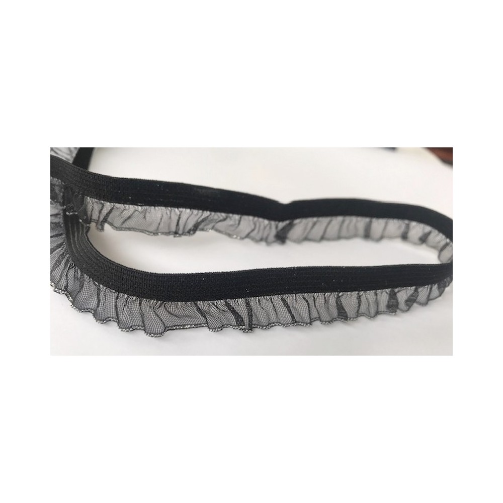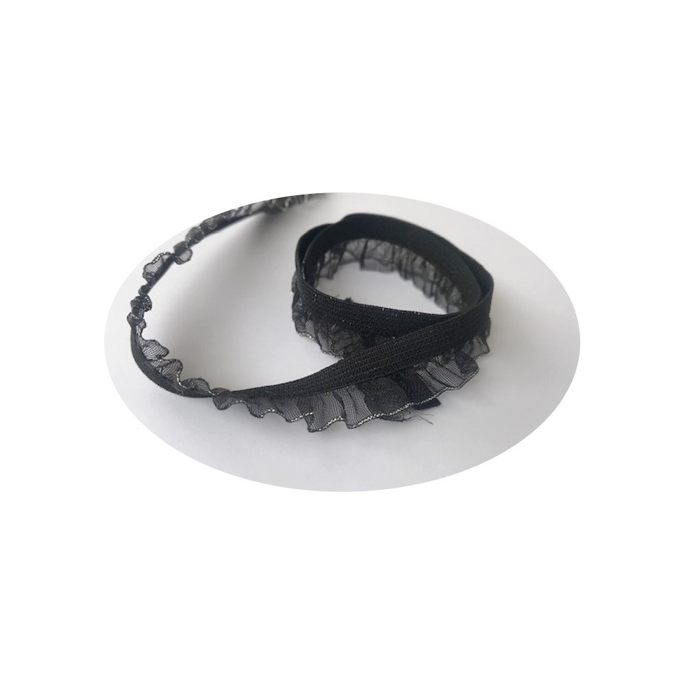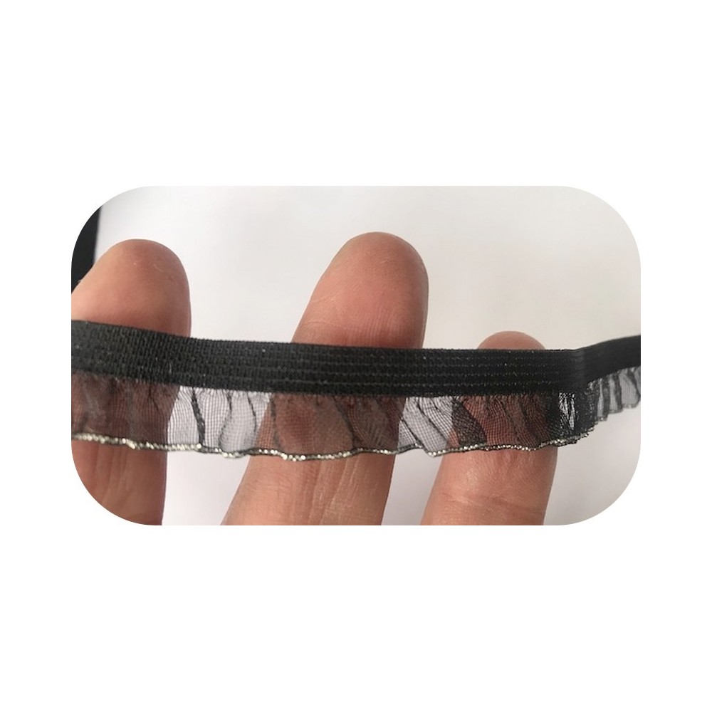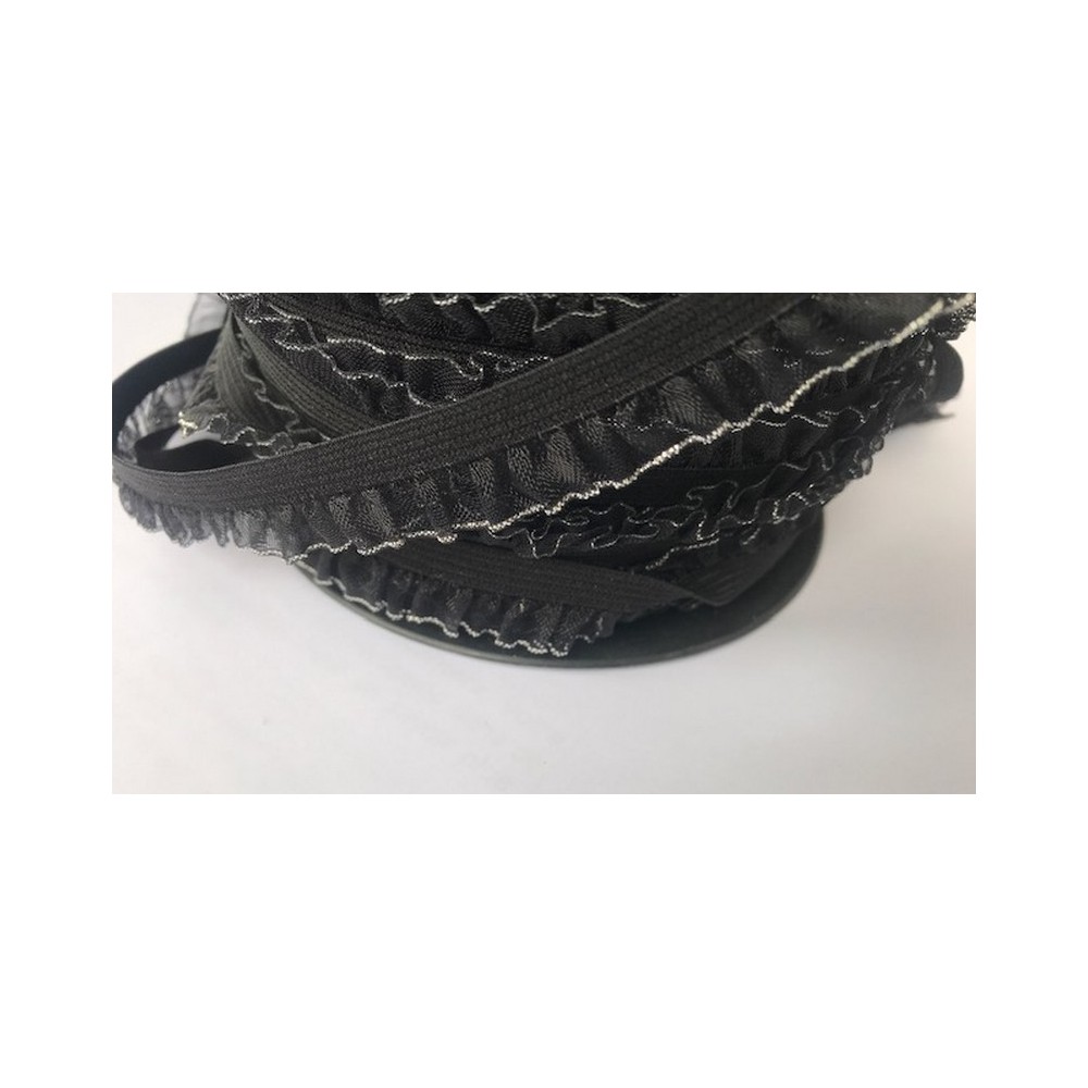 Découvrez notre superbe ruban galon Lycra avec un volant en organza en froufrou ! Parfait pour la confection de lingerie fine, la décoration et la customisation de vêtements stretch en lycra tels que chemisiers, robes, nuisettes, soutiens-gorge et culottes. Notre galon organza élastique noir de 2 cm est vendu au mètre pour répondre à tous vos besoins créatifs. Commandez dès maintenant pour ajouter une touche d'élégance à vos projets de couture !