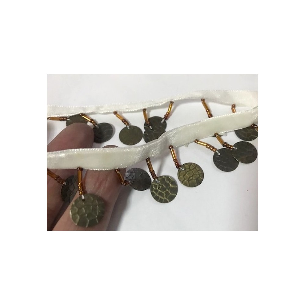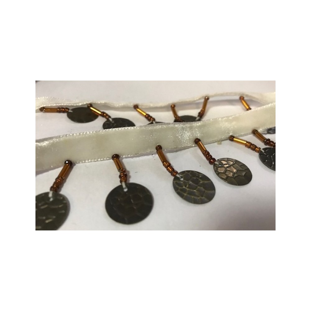 Frange charleston perlé en 3 cm sur ruban velours écru