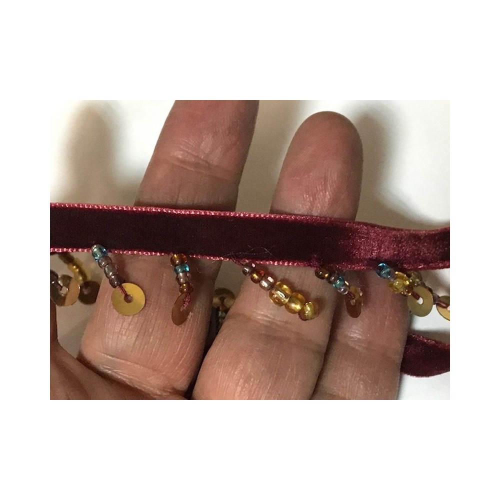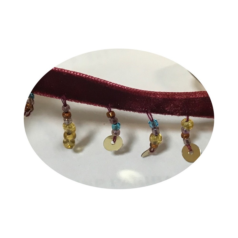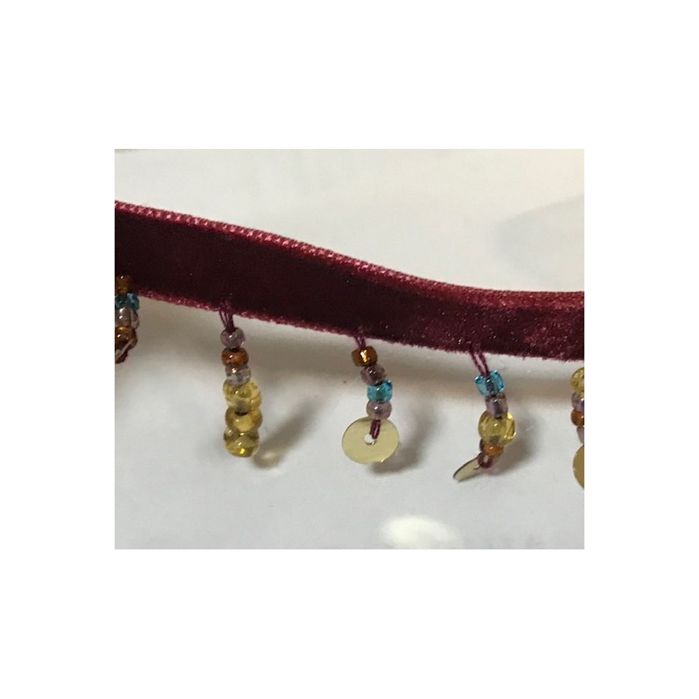 Frange charleston perlé en 2.5 cm sur ruban velours bordeaux