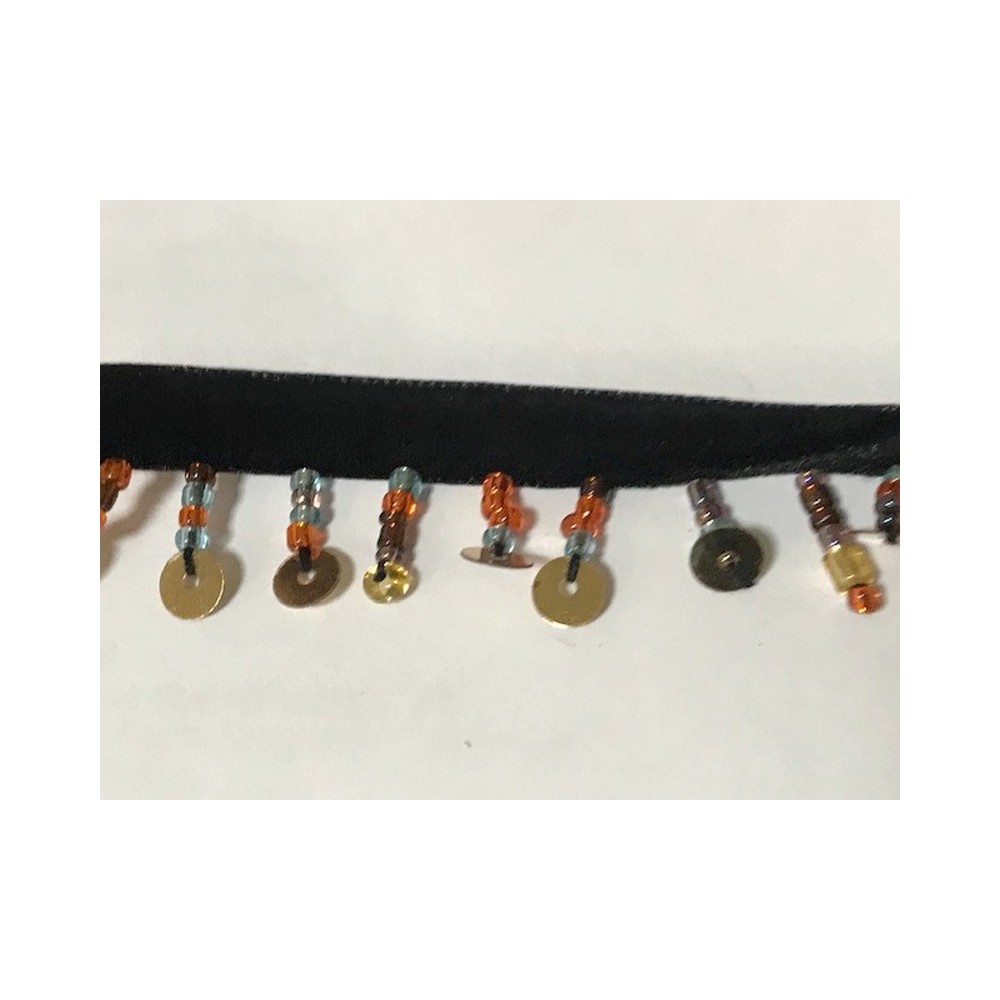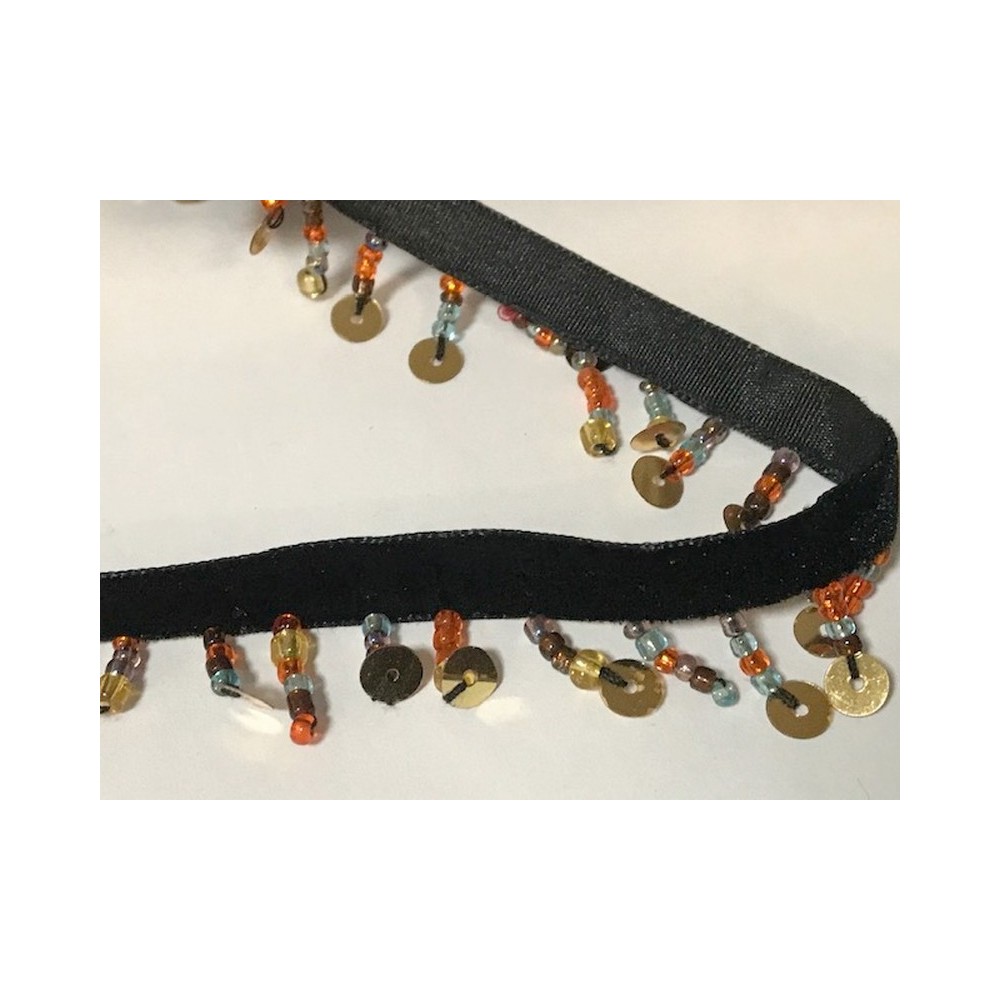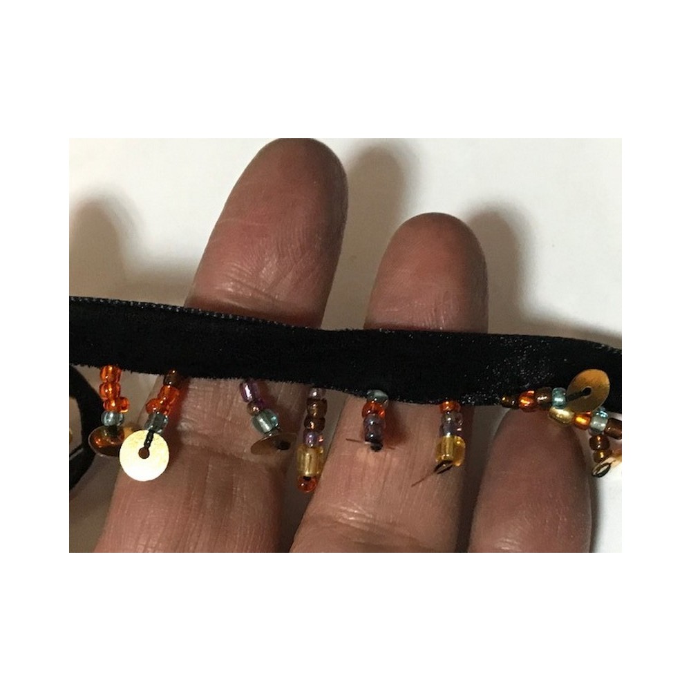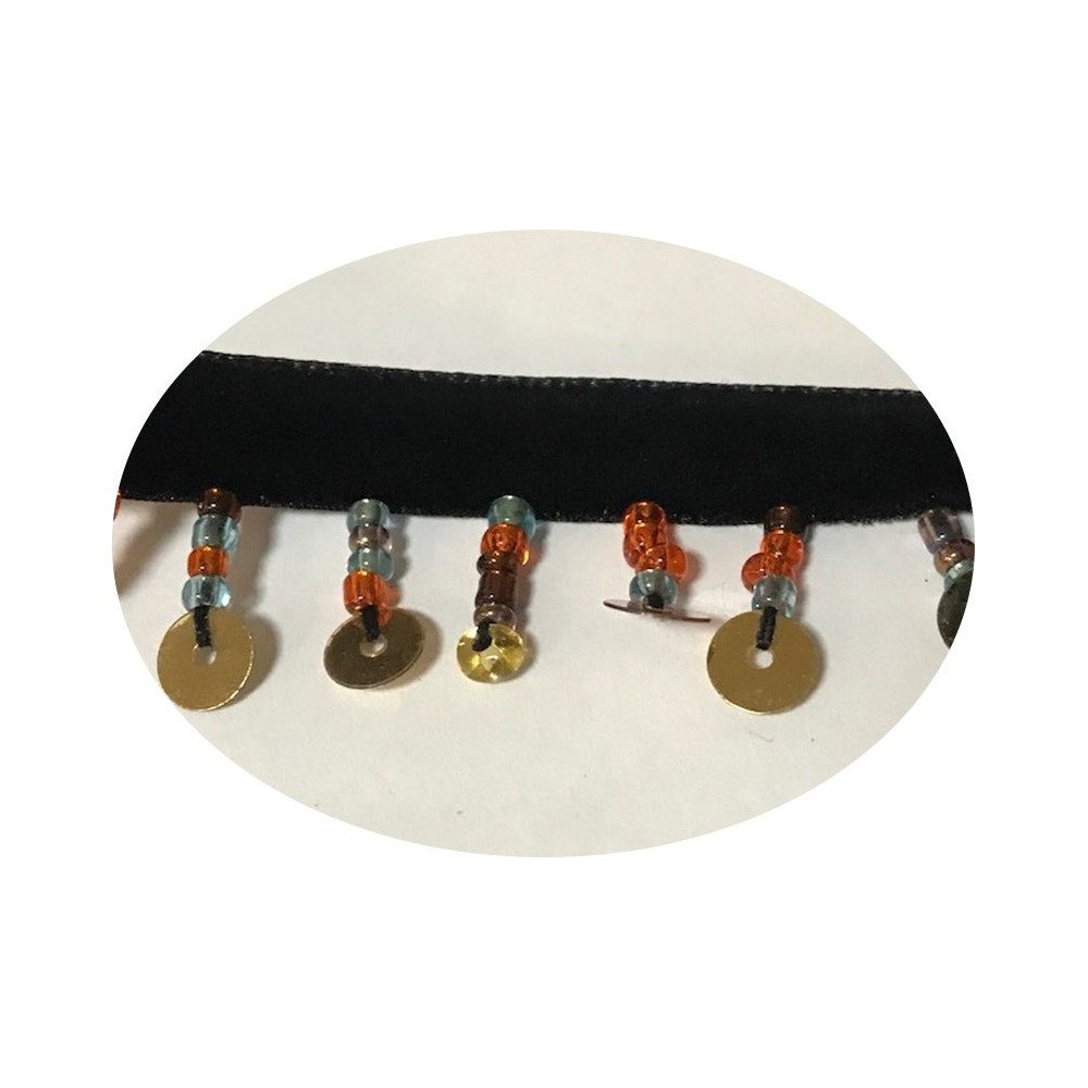 Frange charleston perlé en 2.5 cm sur ruban velours noir