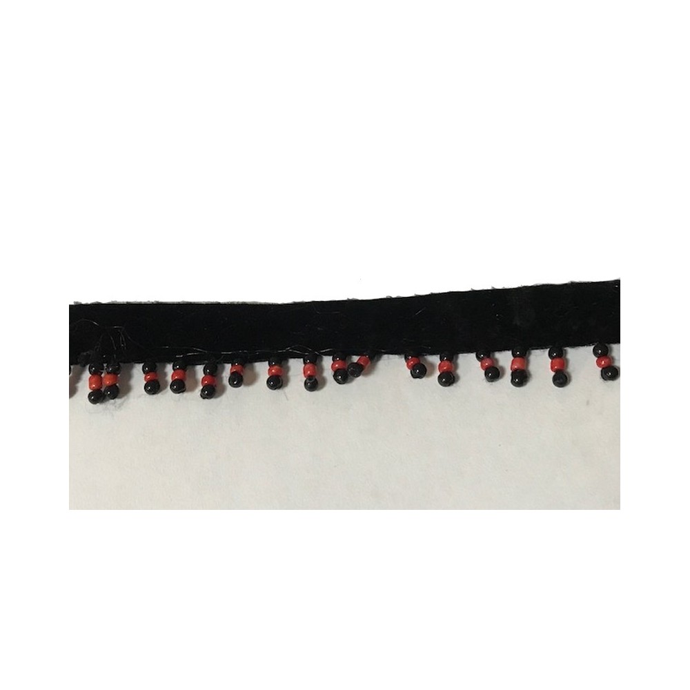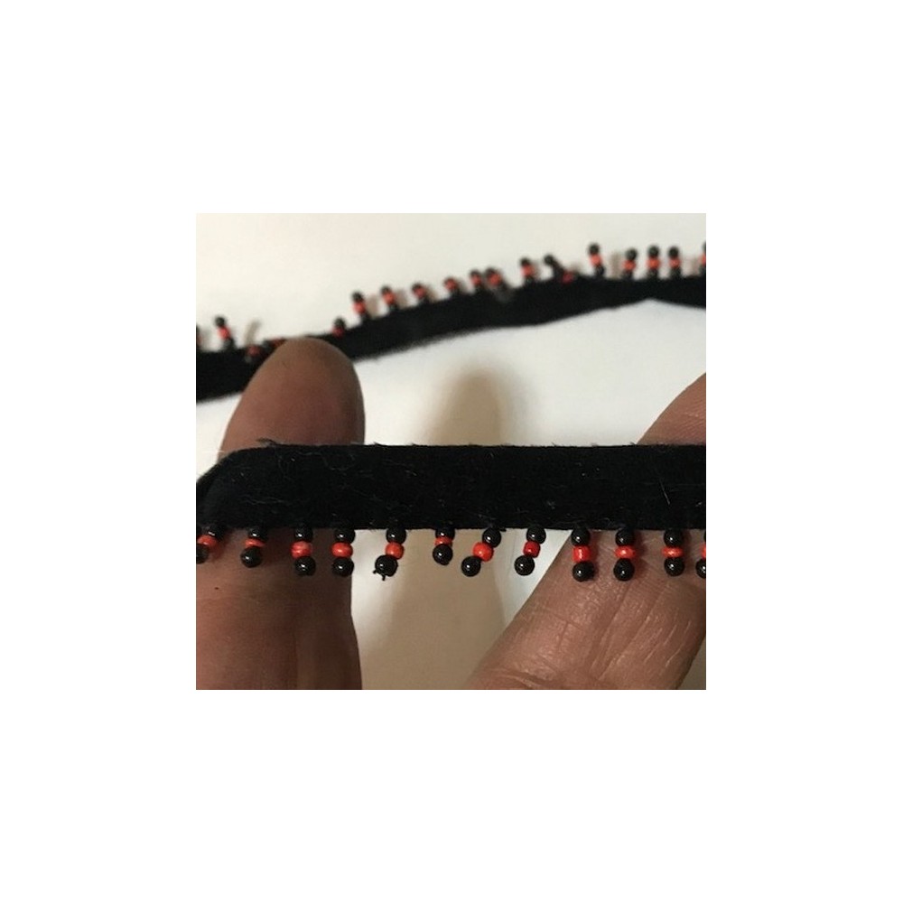 Frange charleston perlé en 1.5 cm sur ruban velours noir