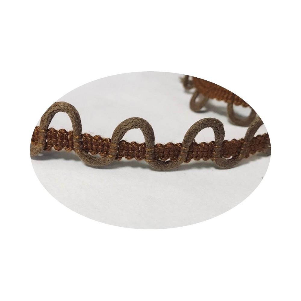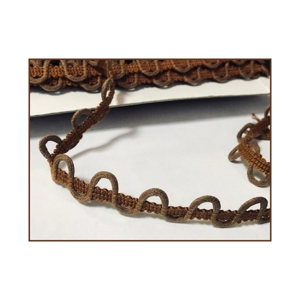 Galon à coudre à bride en coton de couleur marron choco avec des passanr en cordon ciré