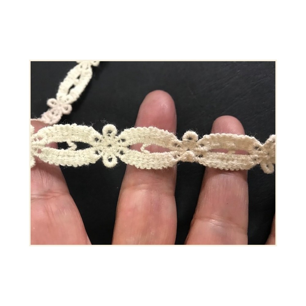 picot galon en guipure - ruban en forme de petites goutte, en picot avec un pied ajouré de couleur ivoire