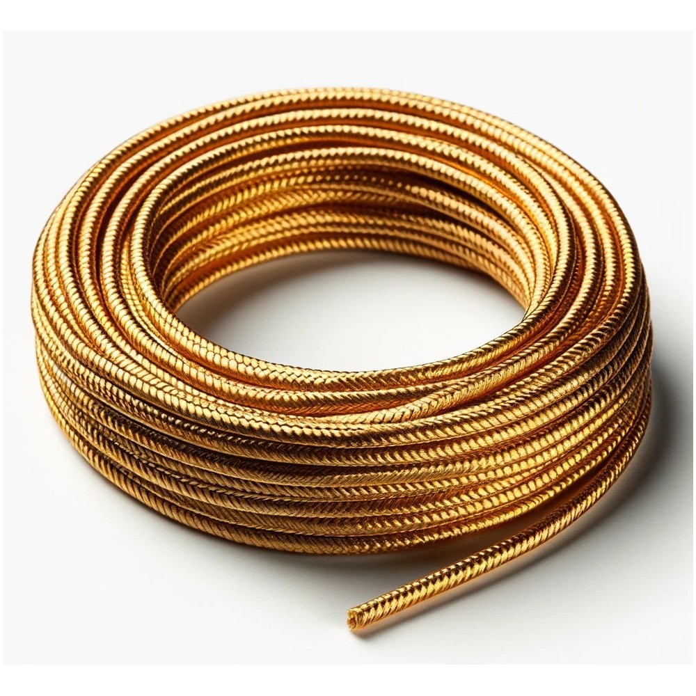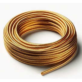 "Découvrez notre élégante collection de soutache doré, parfaite pour l'artisanat de bijoux et les accessoires de costume. Chaque cordon tressé, un exemple exquis de passementerie, est conçu avec un ruban métallique finement filigrané. Idéal pour la décoration couture, ce galon ornemental est un choix privilégié pour ceux qui apprécient le tressage métallique raffiné et recherchent un ruban durable et esthétiquement plaisant.".