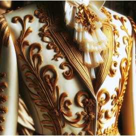 Décoration de Costumes : Dans le théâtre et le cosplay, le soutache doré est fréquemment utilisé pour décorer des costumes, lui donnant un aspect opulent et détaillé.