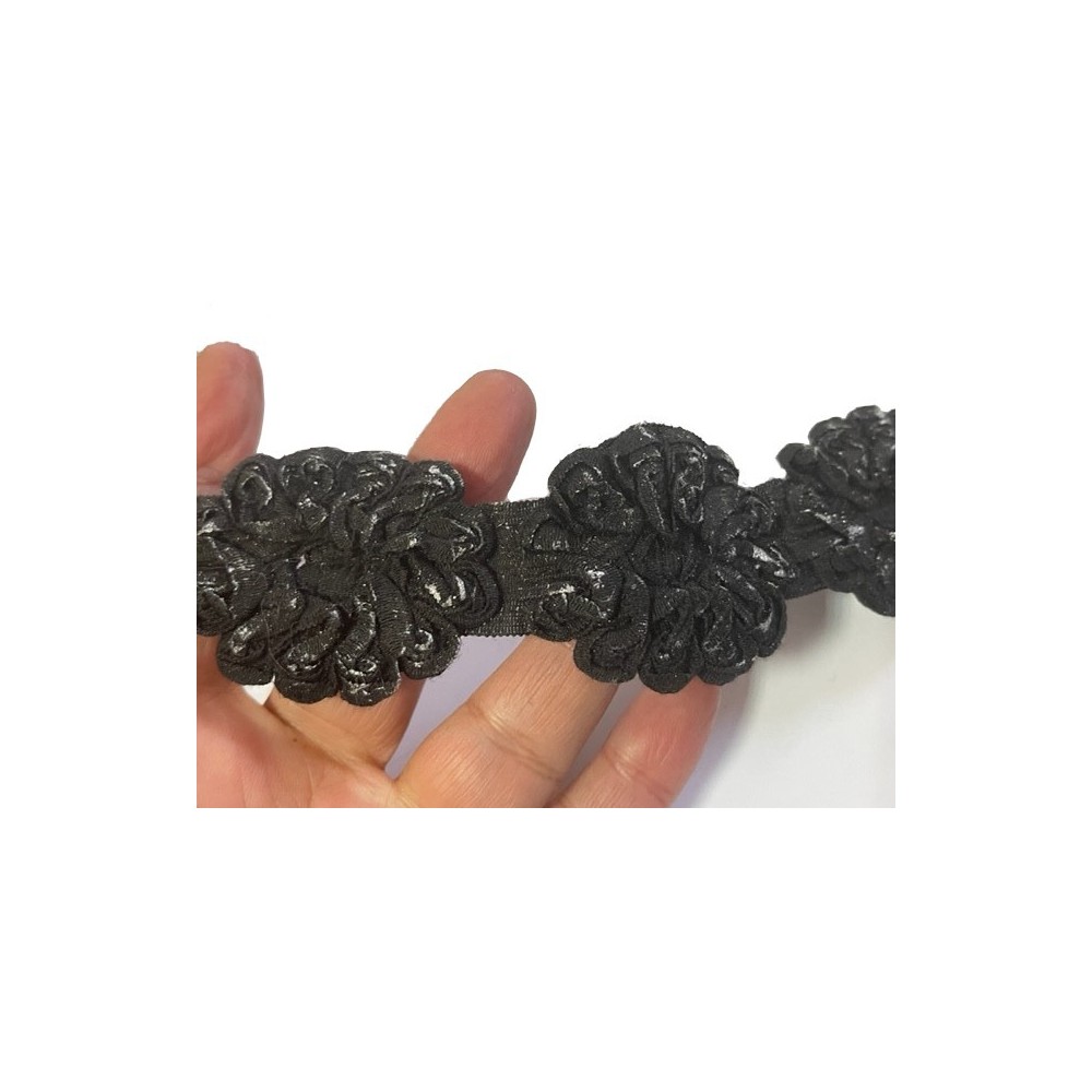 galon fleur au mètre en tissu  avec des reflets argenté
