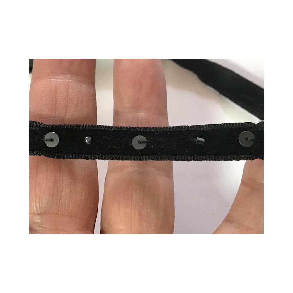 ruban velours noir au mètre orné de perles et de sequins