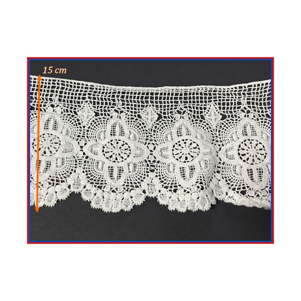 Galon dentelle guipure blanche, Féstonné des deux cotés , ajourée en 15 cm