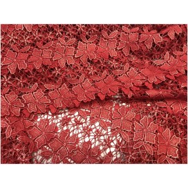 Broderie en Dentelle guipure au mètre rouge en grande largeur.