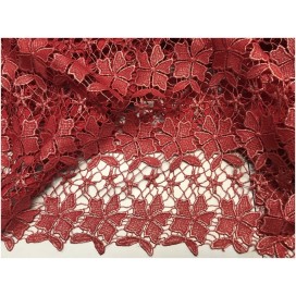 Dentelle en guipure broderie au Mètre rouge en Grande Largeur.