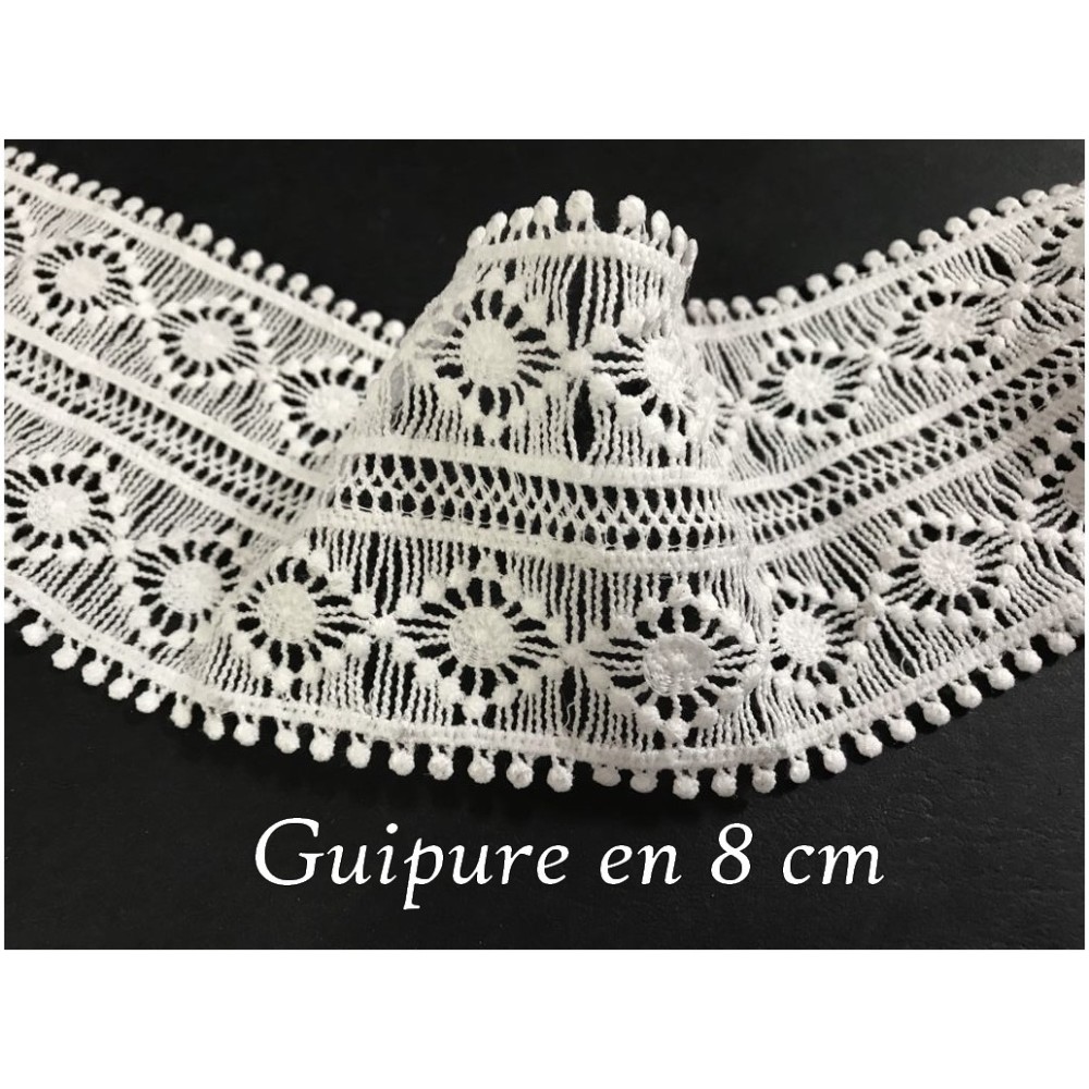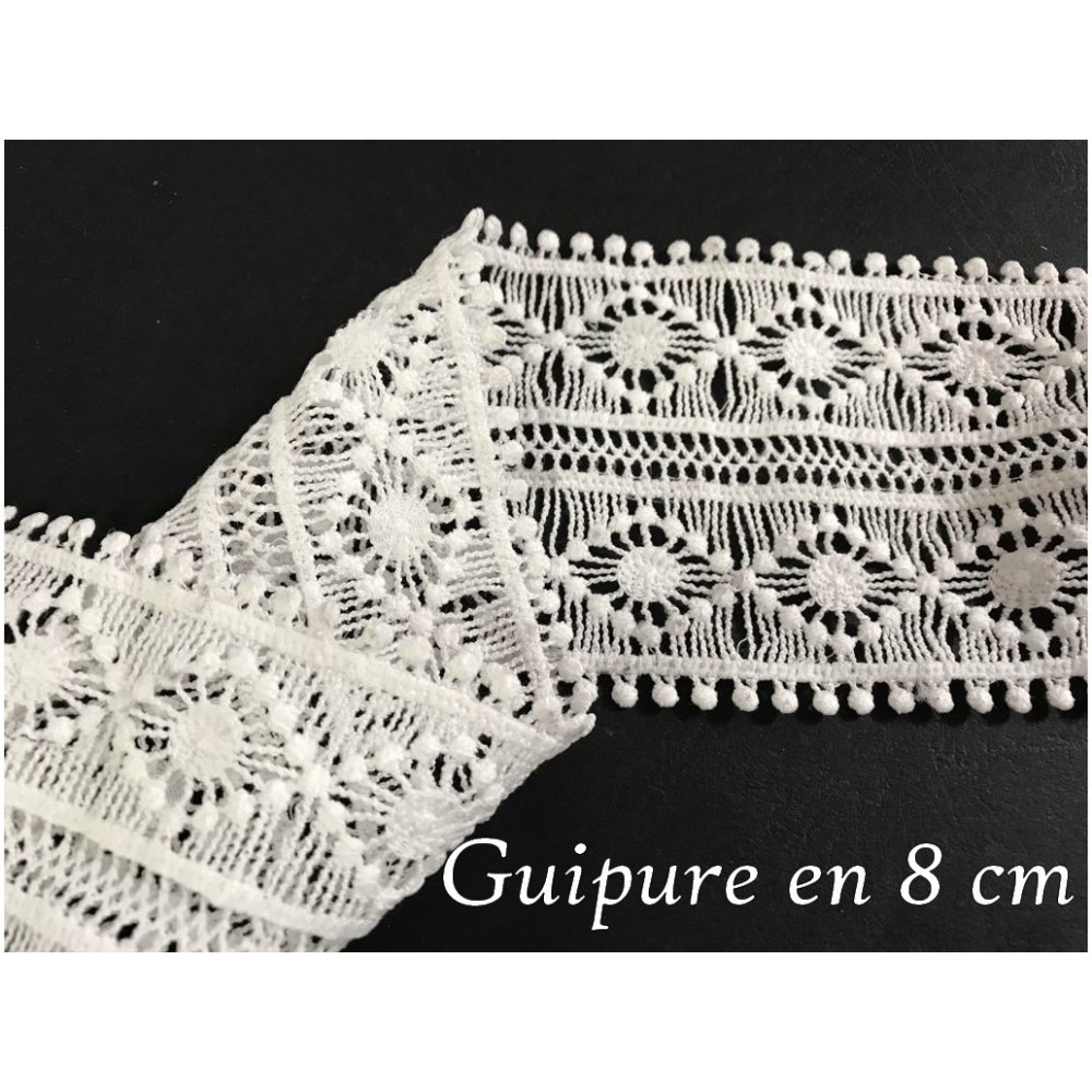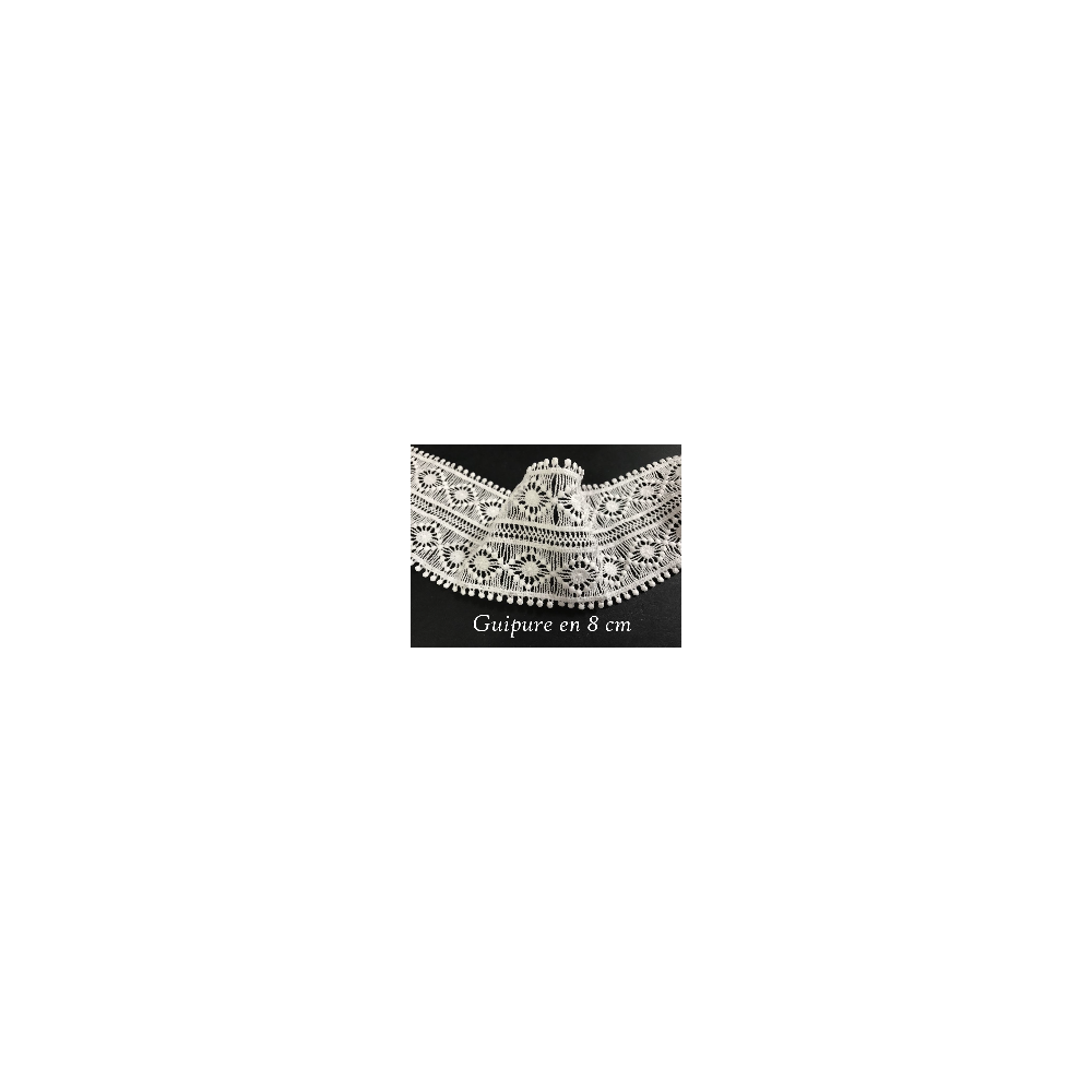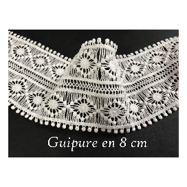 Galon dentelle guipure en 8,5 cm, féstonné en forme de fleurs , ajourée en 8.5 cm de largeur