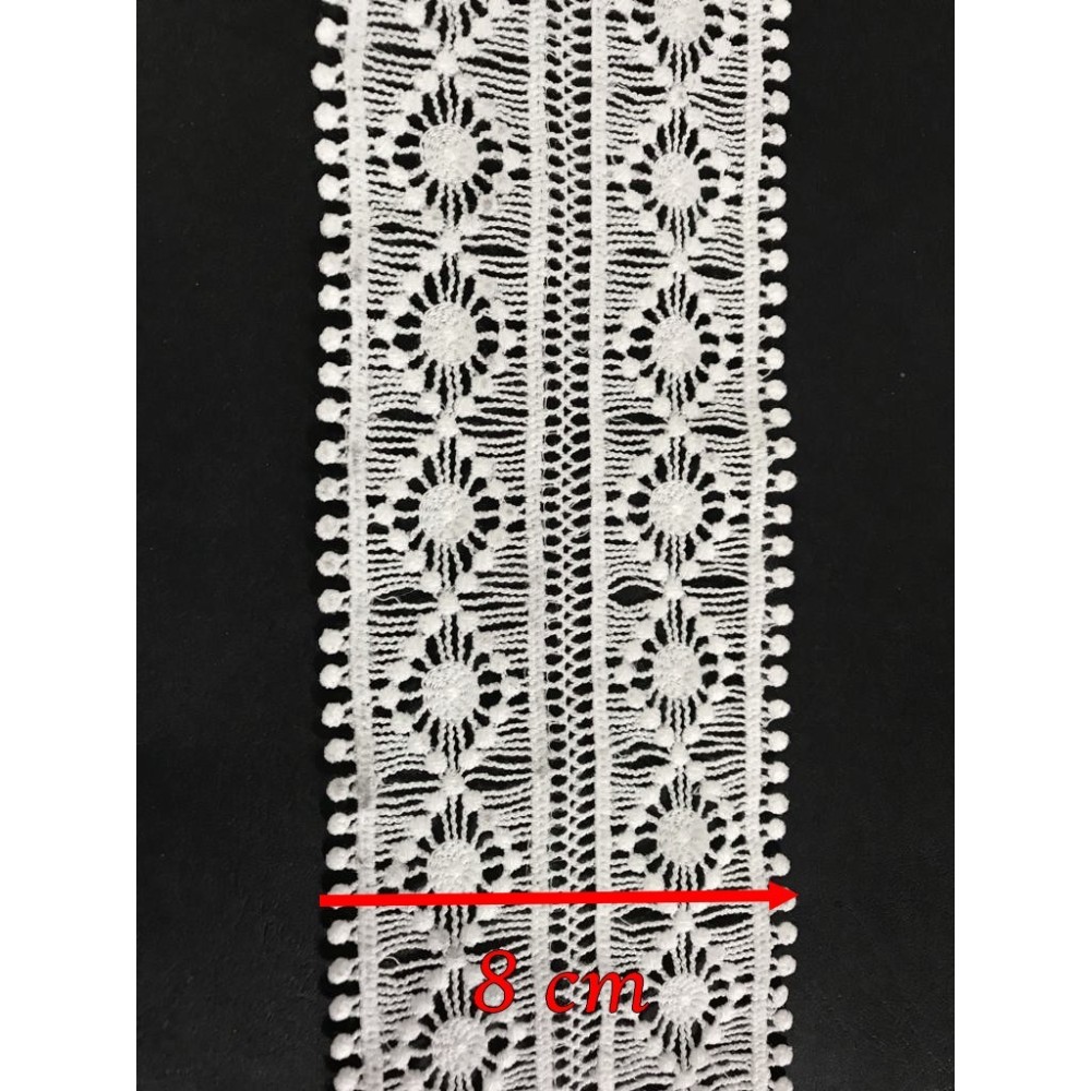 Galon dentelle guipure blanche, Féstonné en forme de fleurs , ajourée en 12 cm