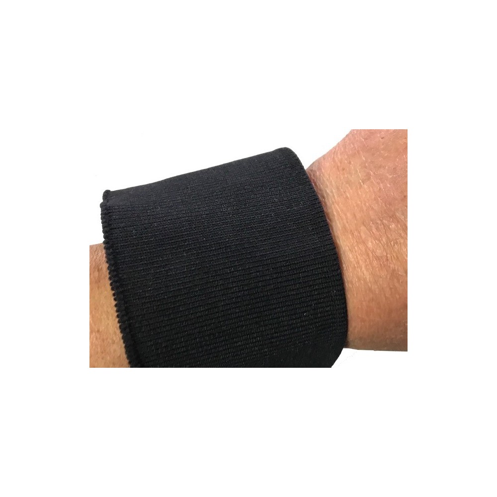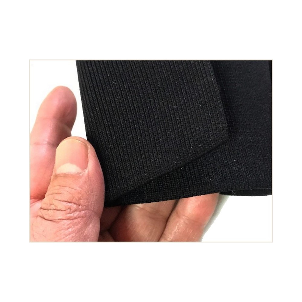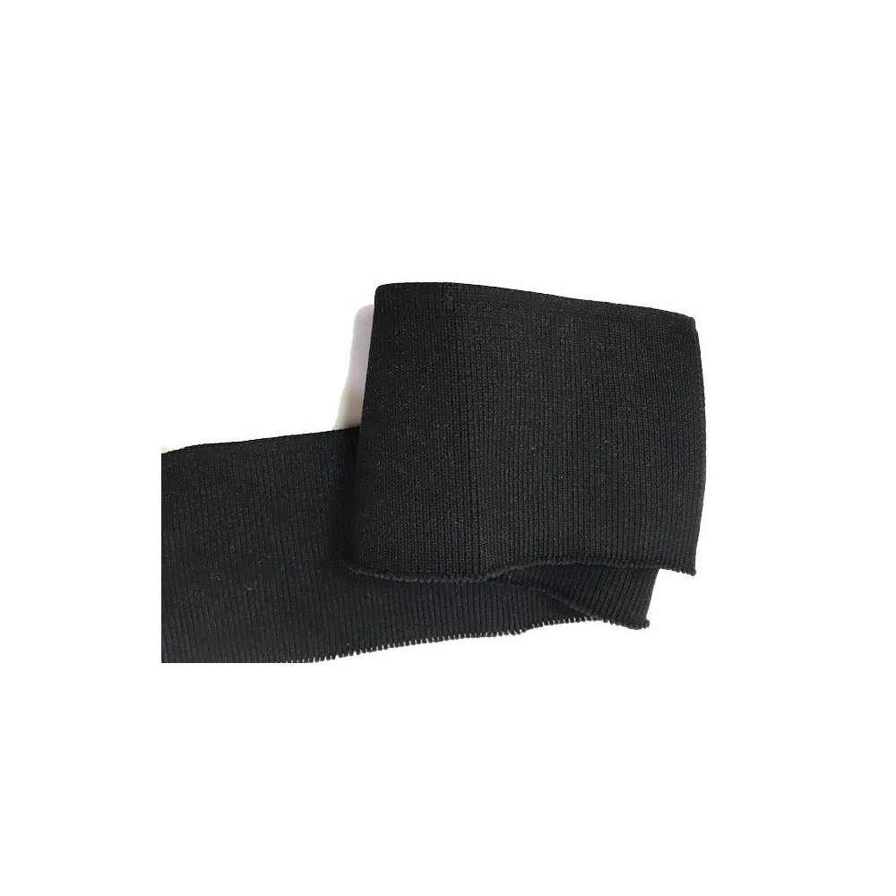 Tissu en bande élastique en jersey de couleur noir pour poignée, manchette, cols, finitions.
