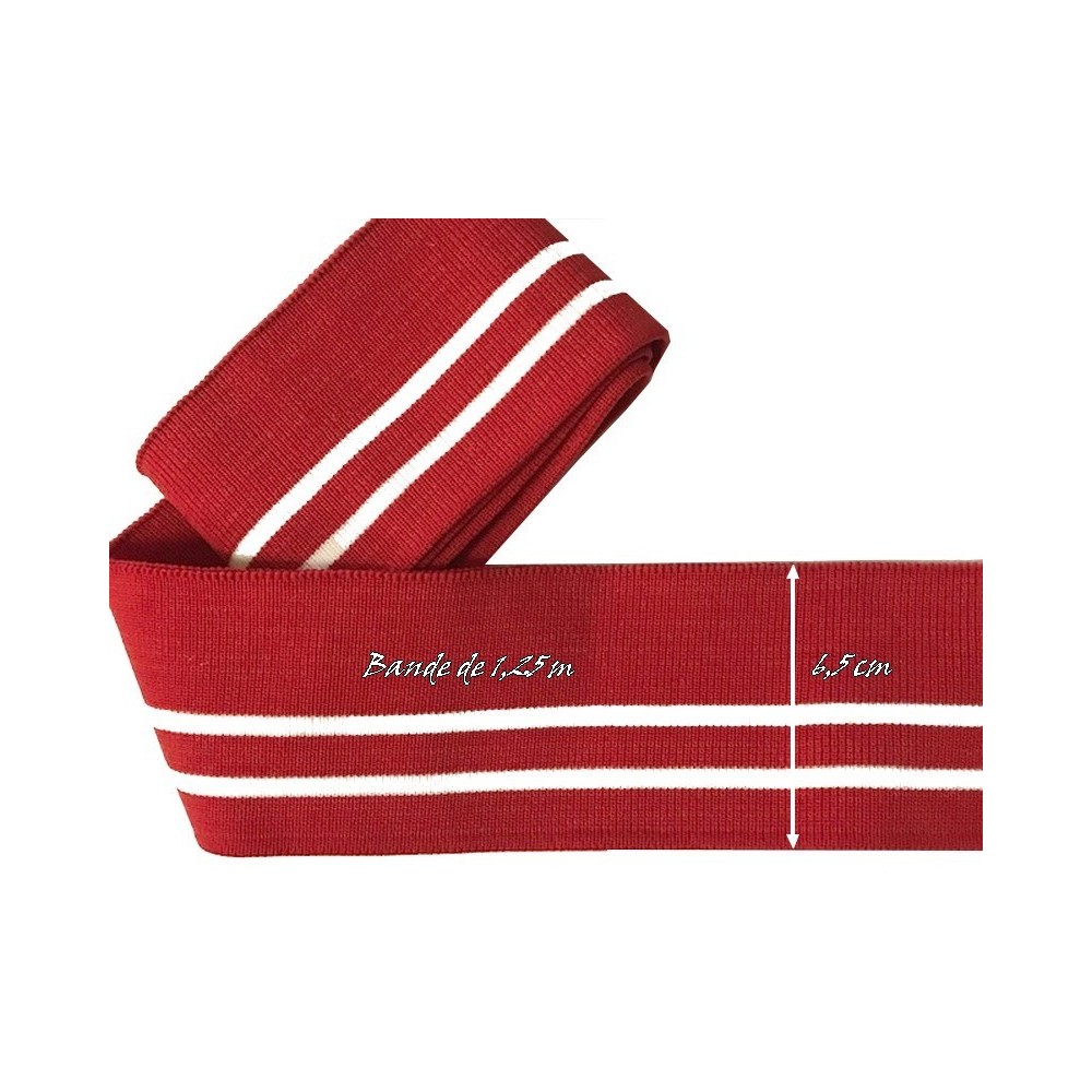 bord cote en Bande de tissu en maille rouge à rayure blanche à coudre, pour customisation, de poignée, de manche, cols, bas de blousons, bordure et terminaison de vetements.