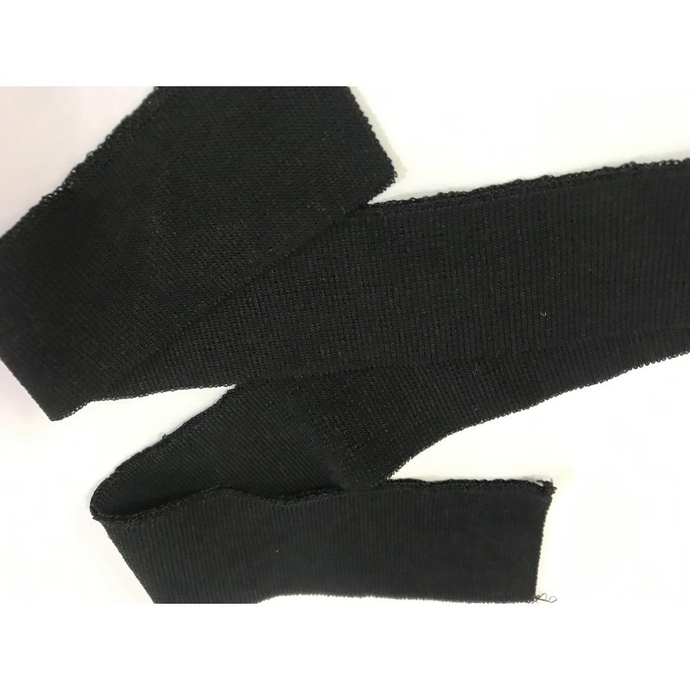 Bande de tissu en jersey noir lycra pour customisation, de poignée, de manche, bas de blousons, bordure et terminaison de vetements.