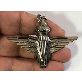 Emblème, insigne militaire en Applique en motif militaire à coudre, en sequins argent, sur un tissu blanc, en tulle.