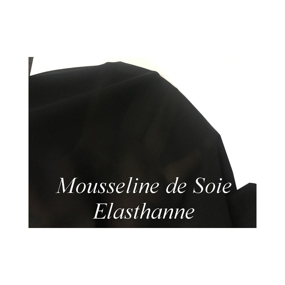 Mousseline stretch en soie noir fabrication française