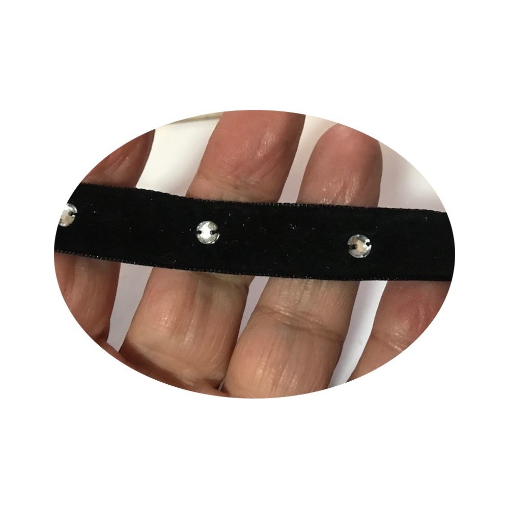 Ruban de velours strass en 15 mm de couleurs noir , pour lingerie vetements et loisirs créatifs.