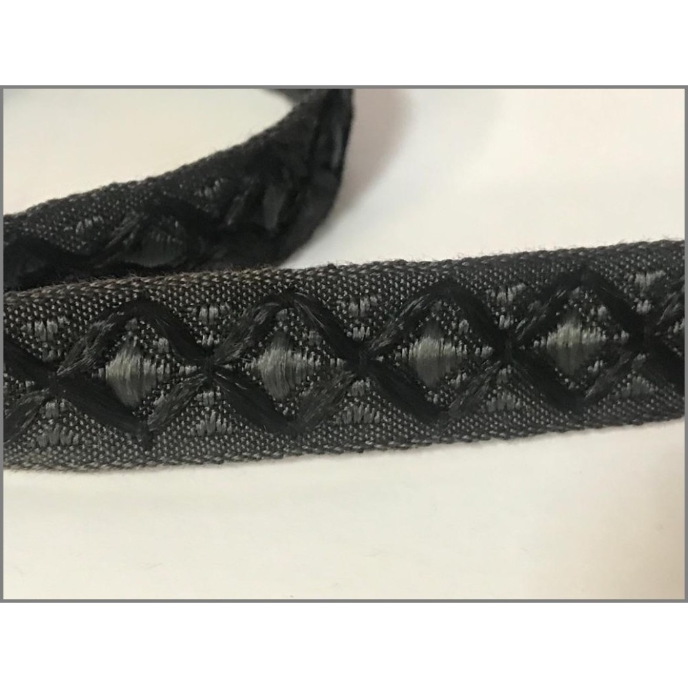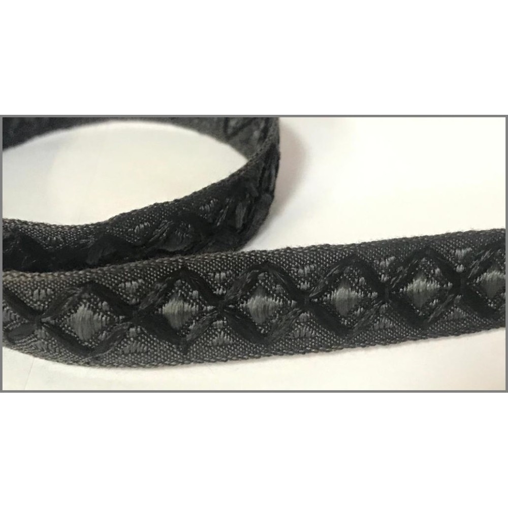 ruban gros grain gris en 15 mm orné de fil satin noir, idéal pour tous vos projets de couture. Ajoutez une touche de finesse et de sophistication à vos vêtements, accessoires ou décorations. Commandez dès maintenant et laissez libre cours à votre talent de couturier/ère !