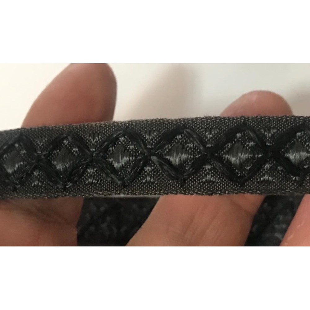 Galon ruban gros grain au mètre en couleur noir , en point sellier blanc pour décorations et customisations.