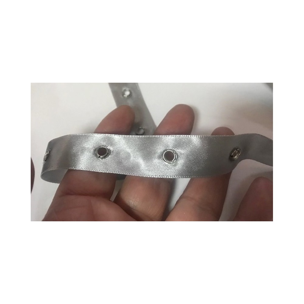 La bande à œillet en satin est un accessoire de couture polyvalent, doté de petits œillets métalliques, utilisé pour créer des éléments décoratifs et fonctionnels dans la confection de vêtements, de lingerie, d'accessoires de mode et de projets de décoration. Ses œillets permettent d'ajuster, de personnaliser et d'embellir une variété de créations textiles.
