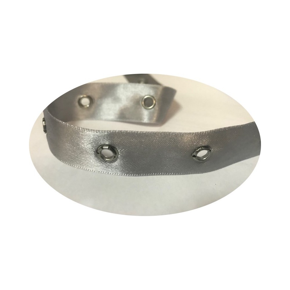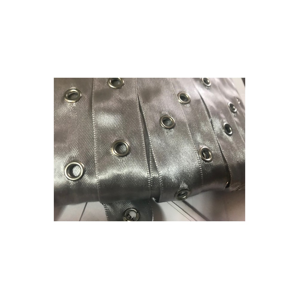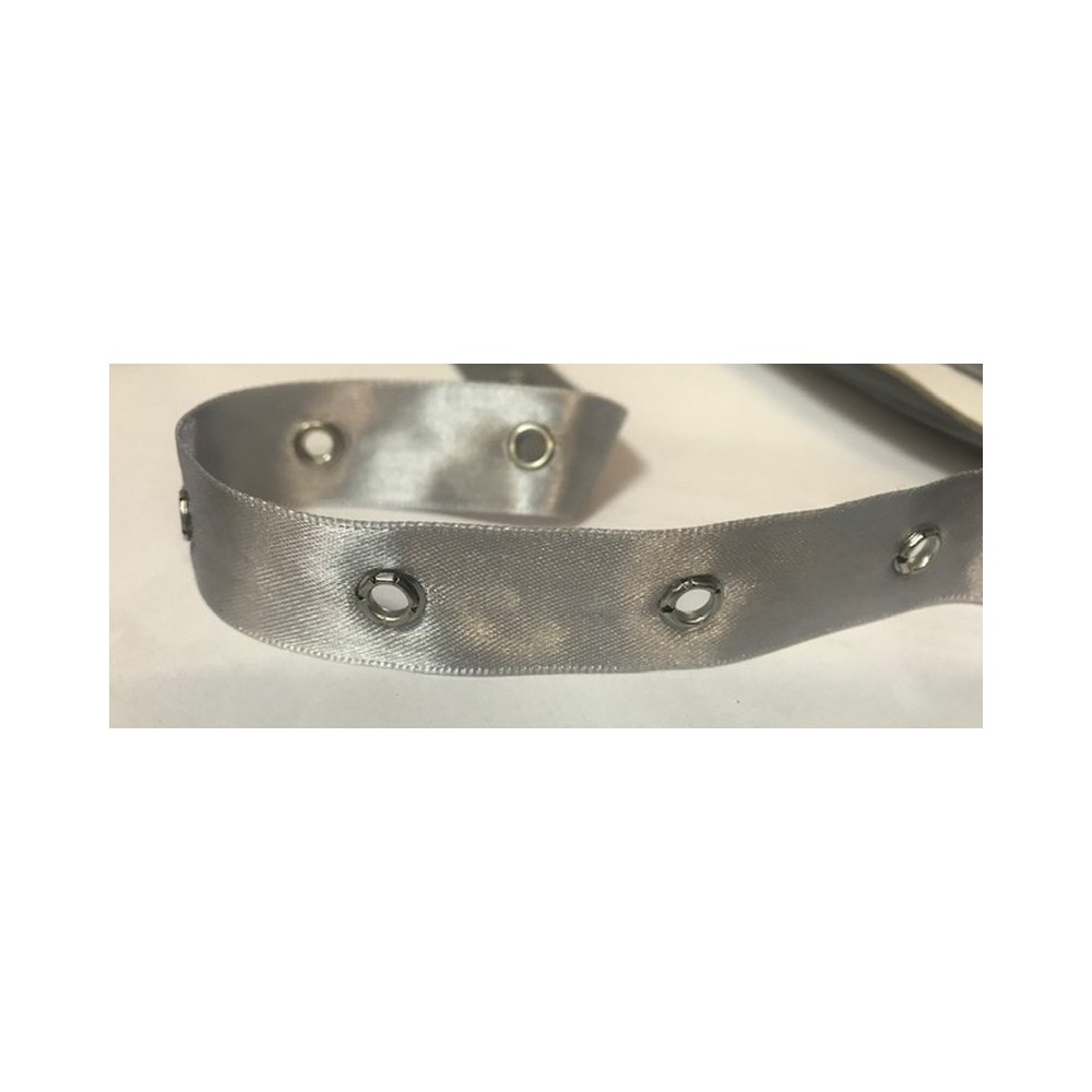 Fourniture bande oeuillet sur satin gris double face au mètre