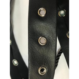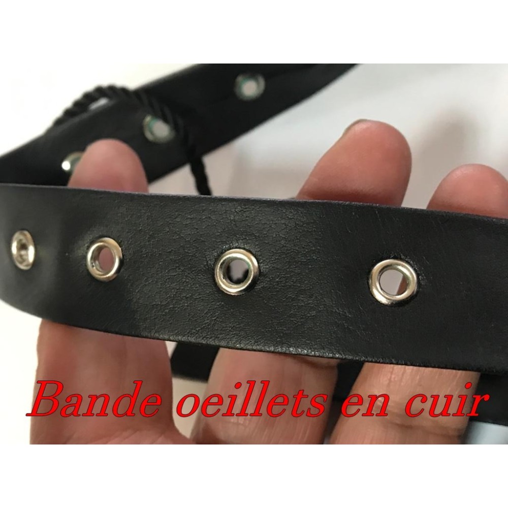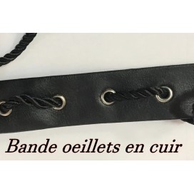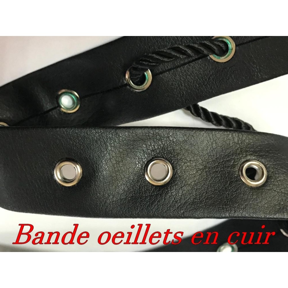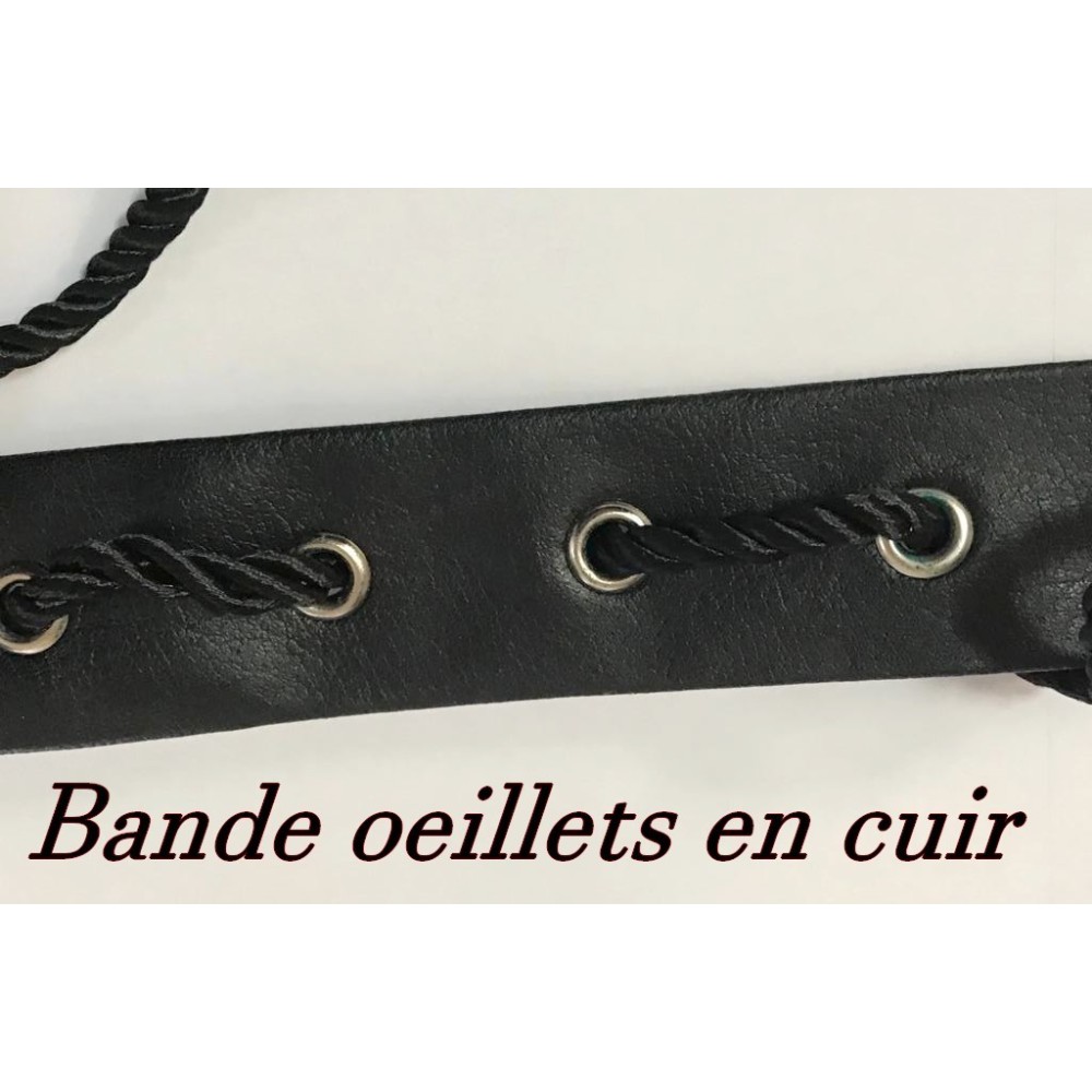 ruban oeuillet en simili cuir noir avec une surpiqure blanche sur les cotés