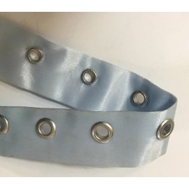 Fourniture bande oeuillet sur satin gris double face au mètre