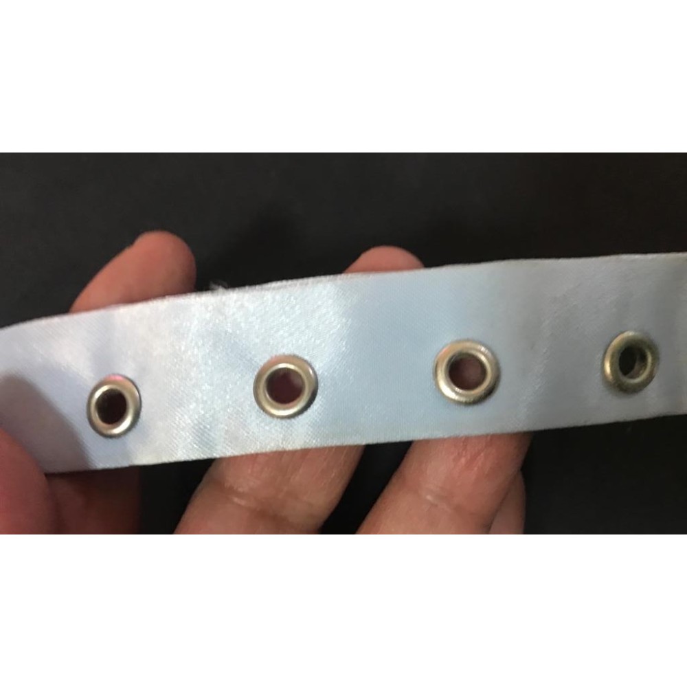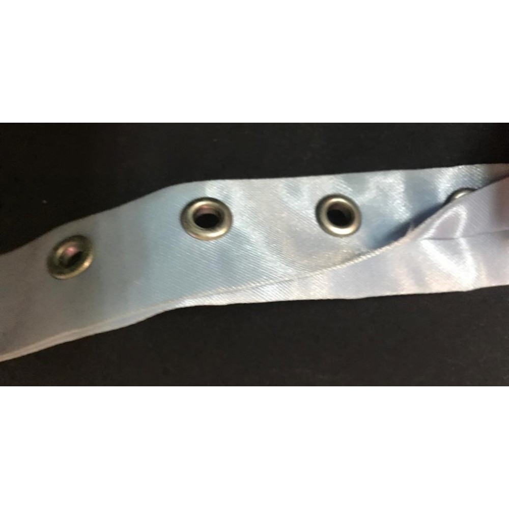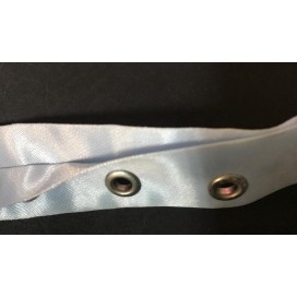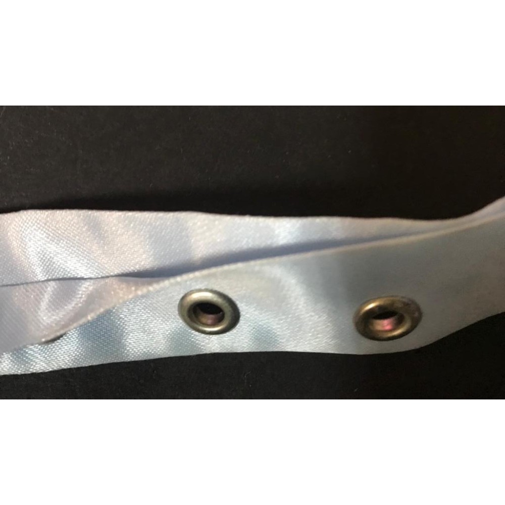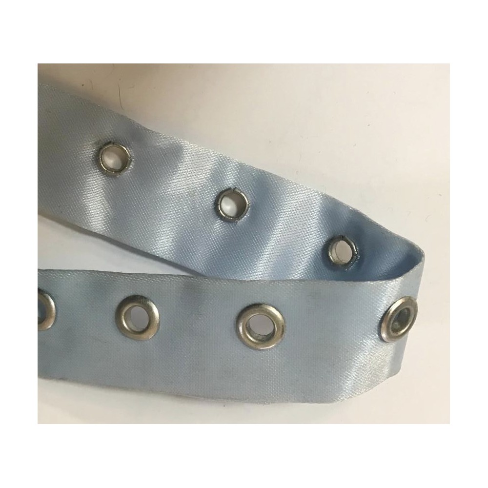 Fourniture bande oeuillet bleu cielen satin au mètre.