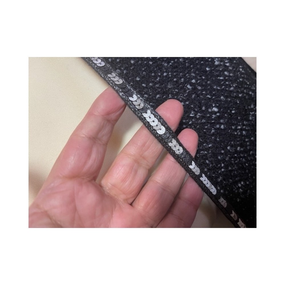 Ruban au mètre en 1 cm sur un support en laine noir avec des sequins argent et sequins transparent.