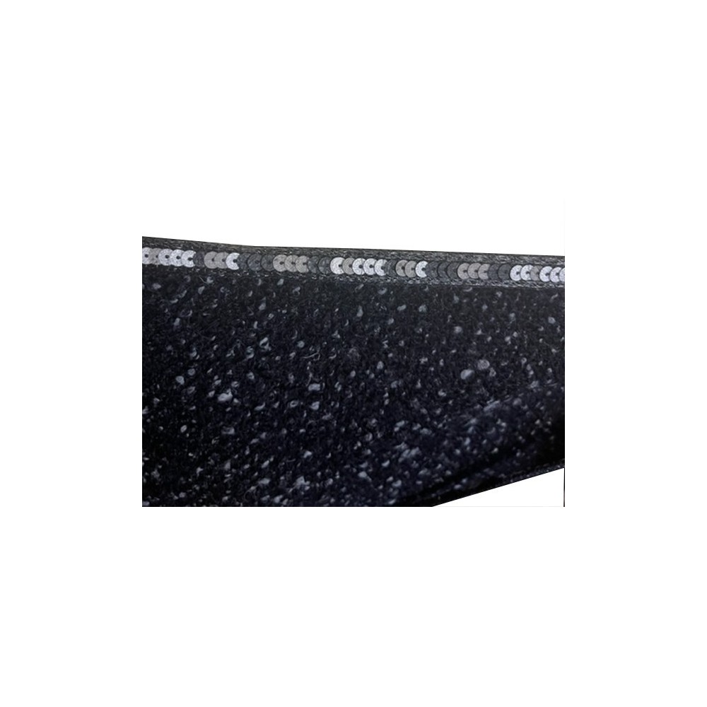 Ruban paillettes sequins en couleur noir sur tulle noir, orné de rondelles en simili cuir noir