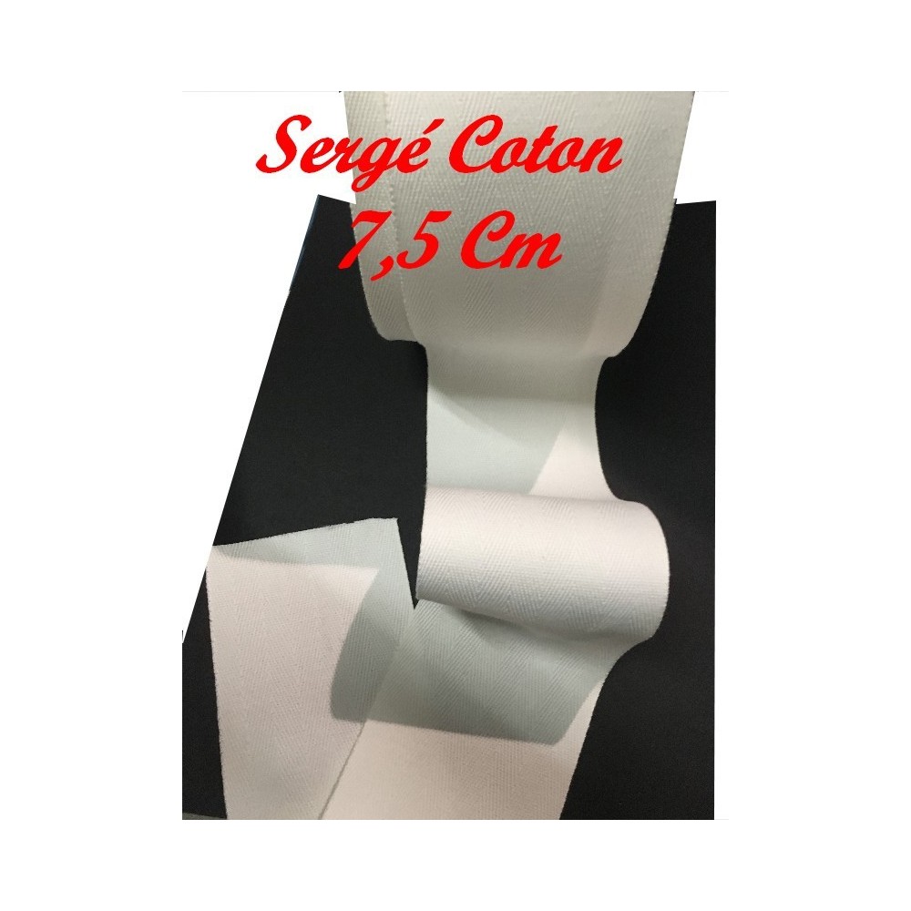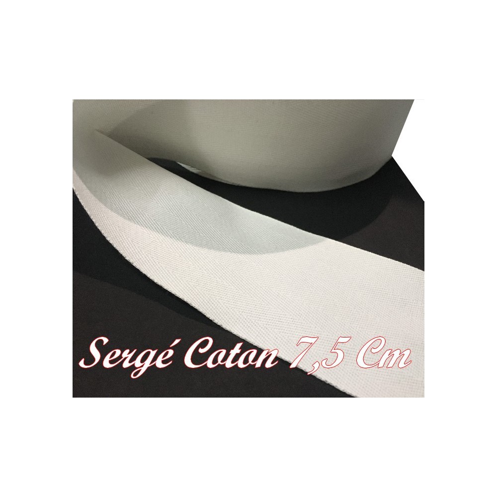 Ruban sergé coton au mètre en bande de couleur blanc en 7,5 cm mm pour décorations, et customisations