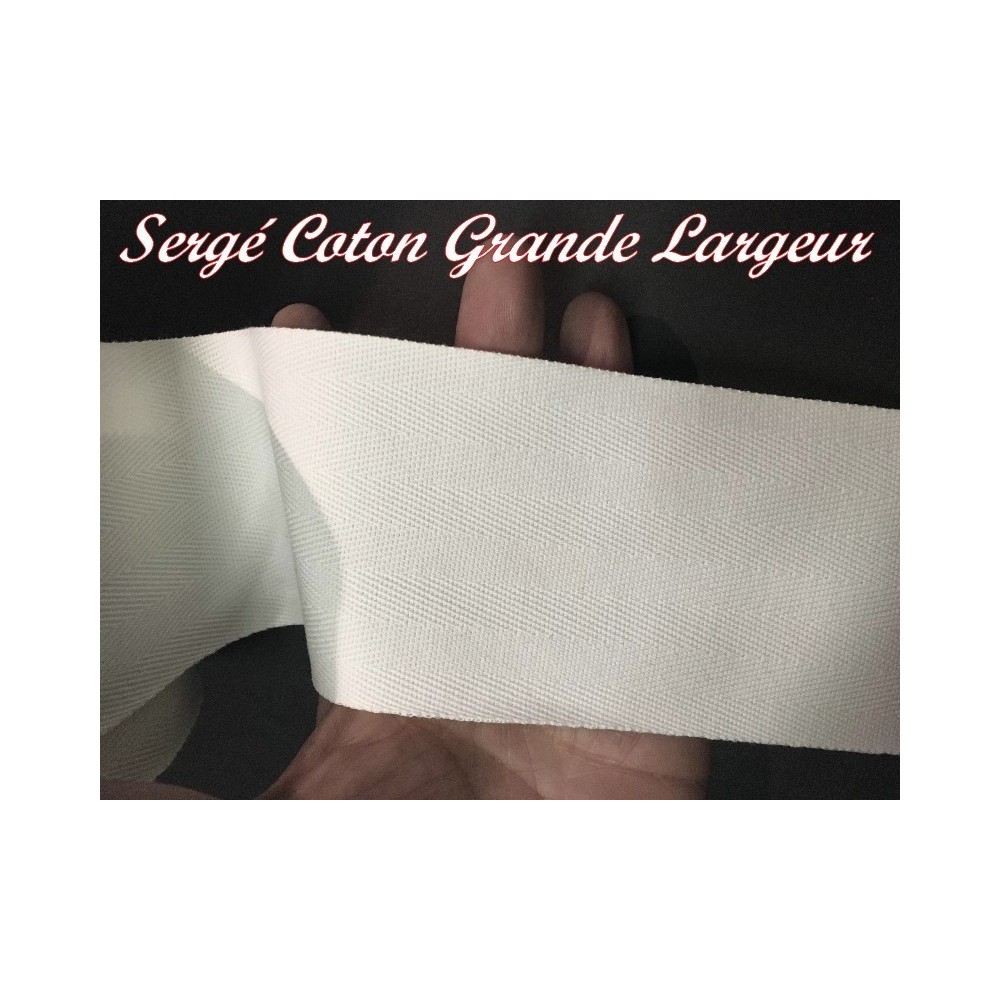 Beau Ruban en sergé coton au mètre en grande largeur de 7.5 cm recto et verso.