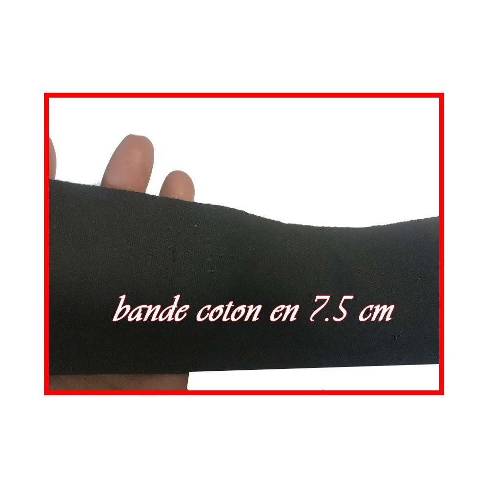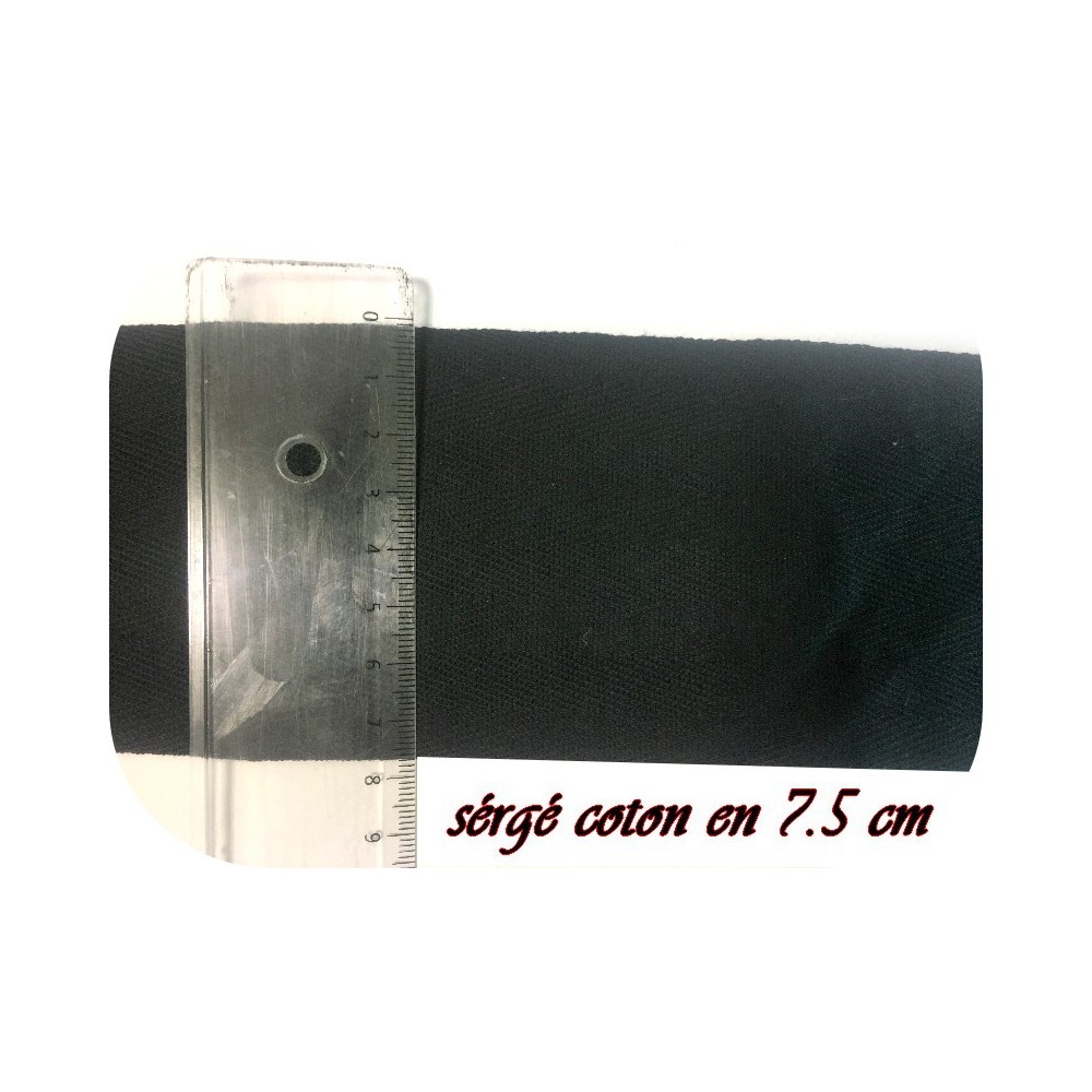 Ruban sergé coton au mètre en bande de couleur noie en 7,5 cm pour décorations, et customisations