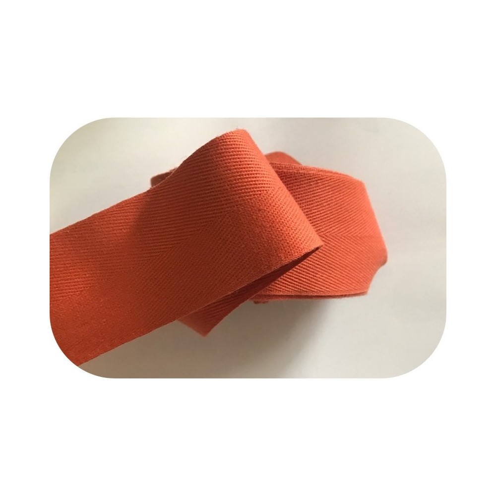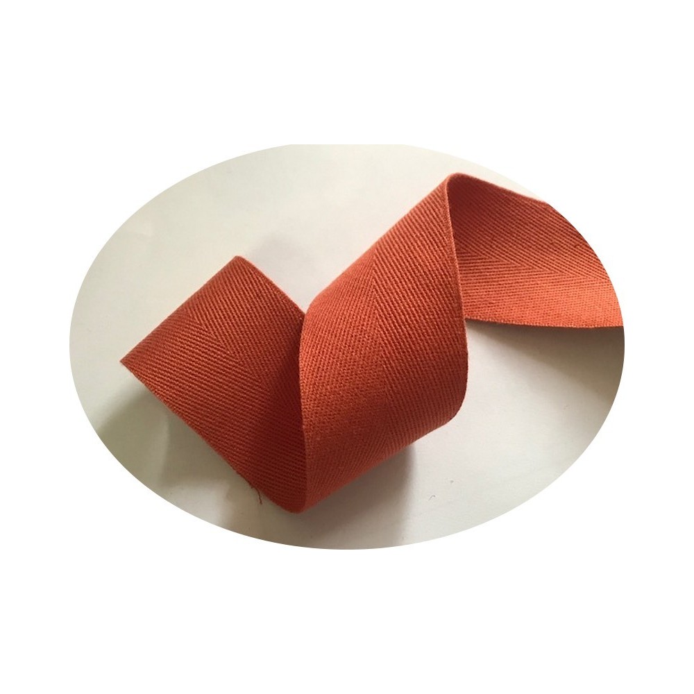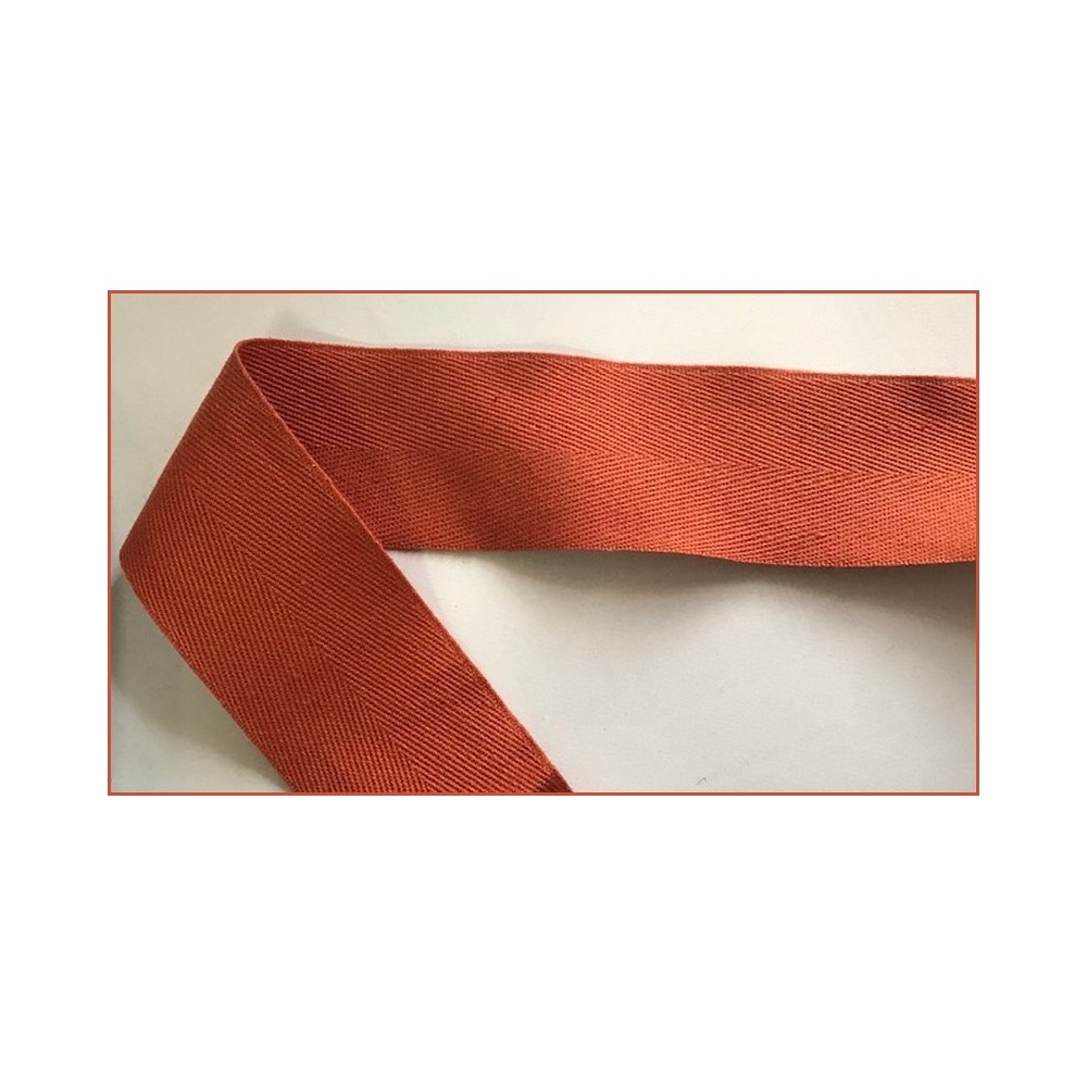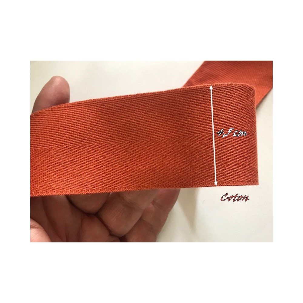 Ruban sergé coton au mètre en bande de couleur brique 4.5 cm pour décorations, et customisations