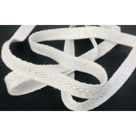 Ruban sergé coton au mètre en bande de couleur blanc en coton en 20 mm pour décorations, souple et facile à coudre.