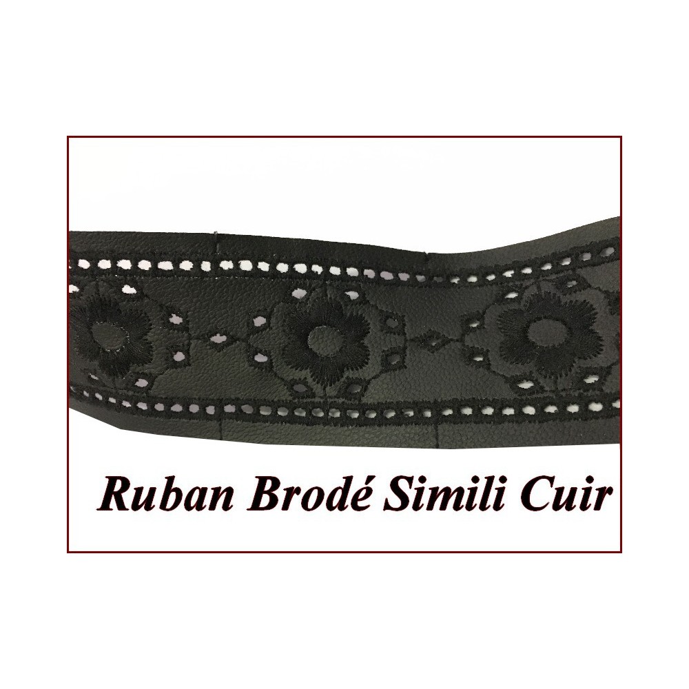 Ruban bande en simili cuir brodé et perlé en perles et motif noir à coudre