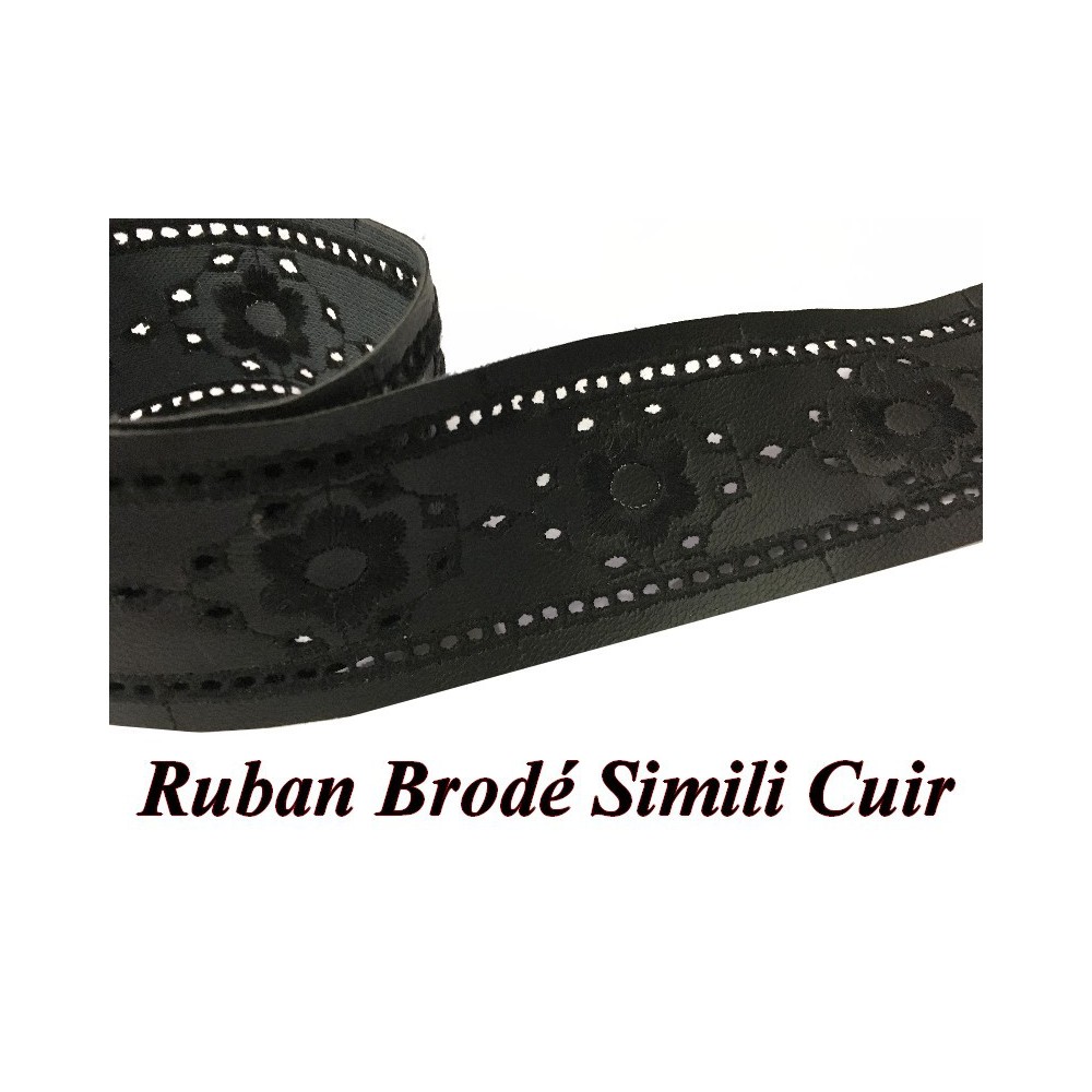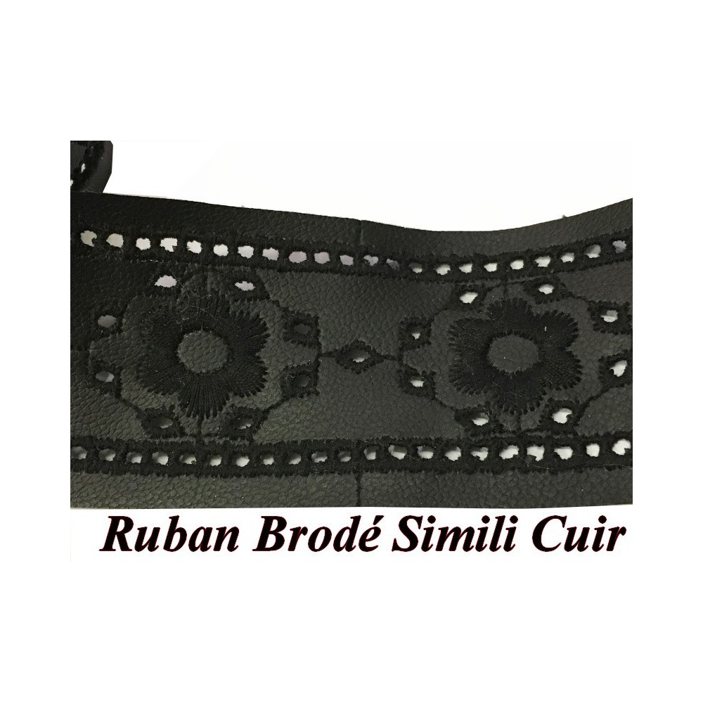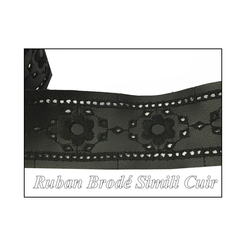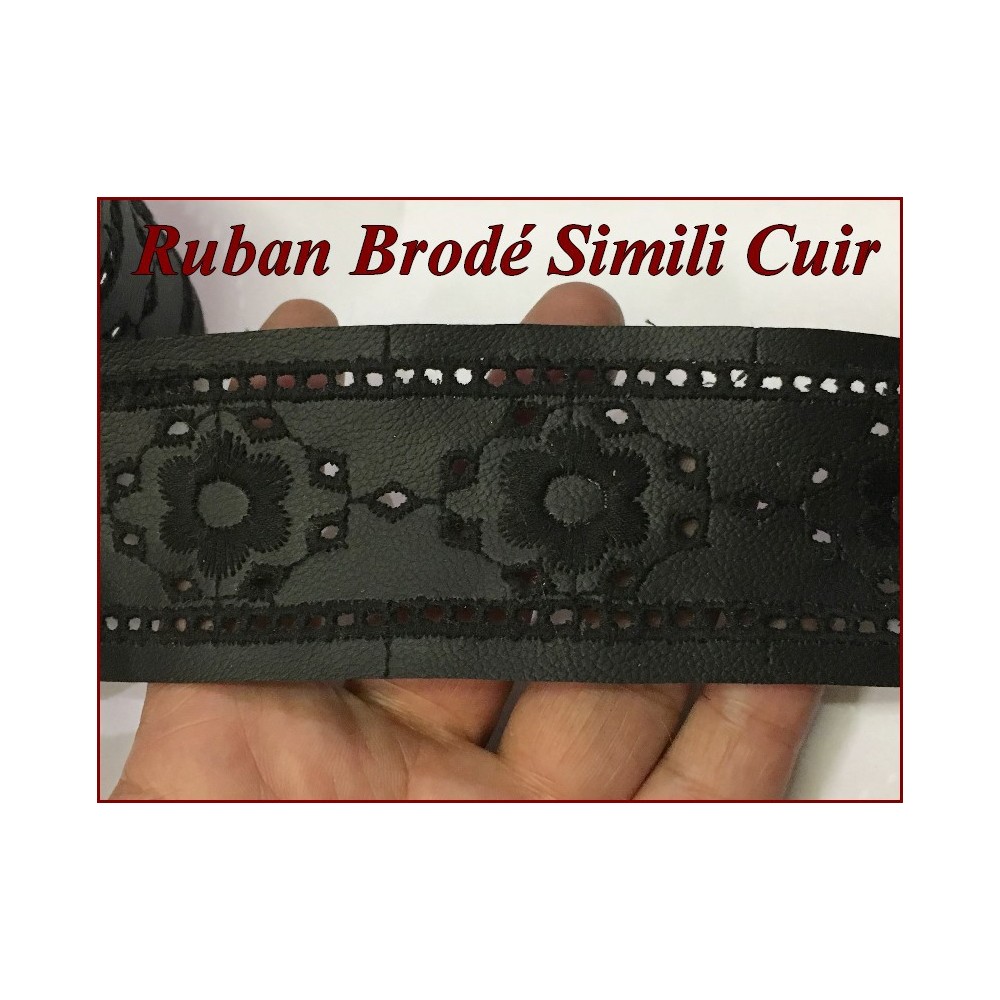 Ruban brodé au mètre en simili cuir de couleur noir mat