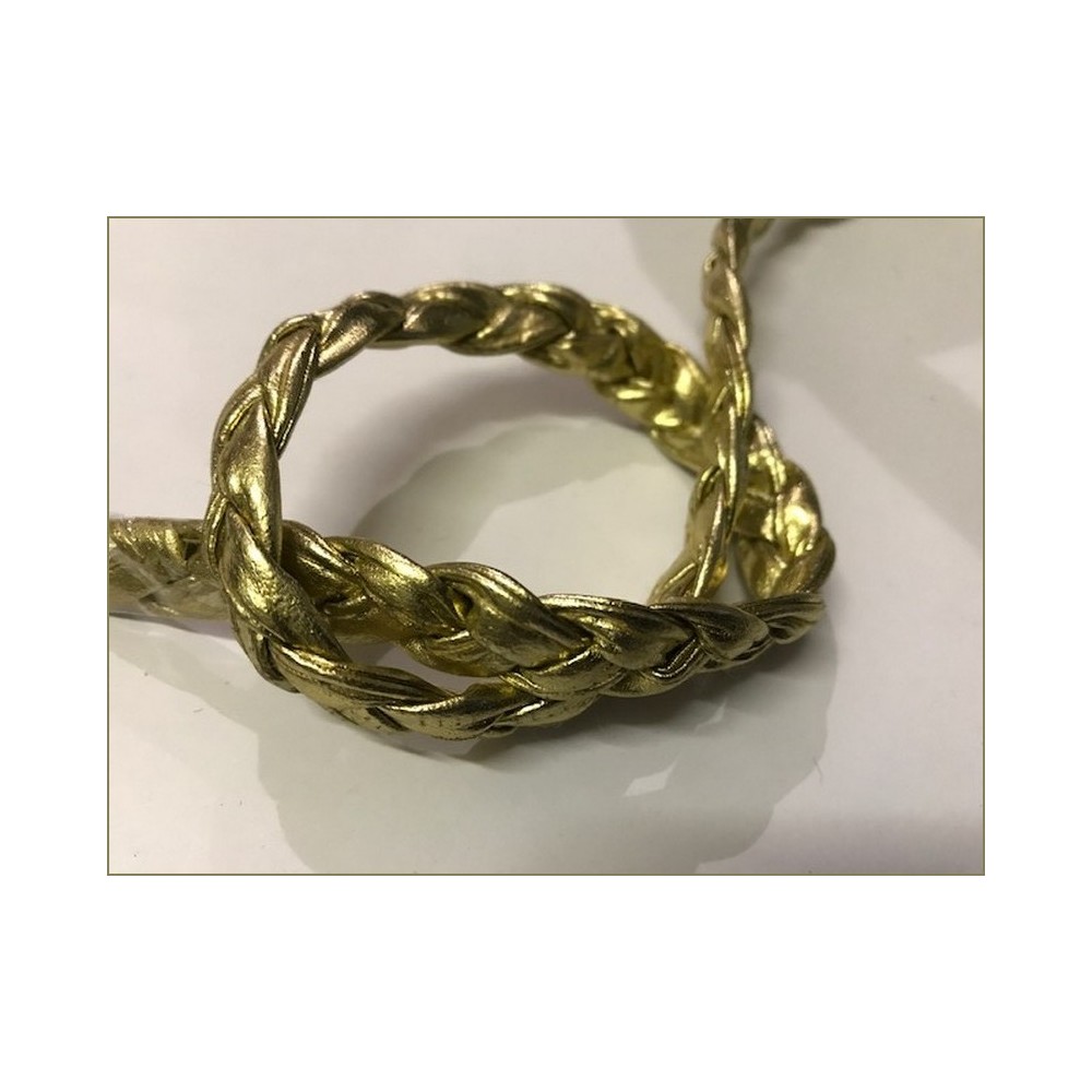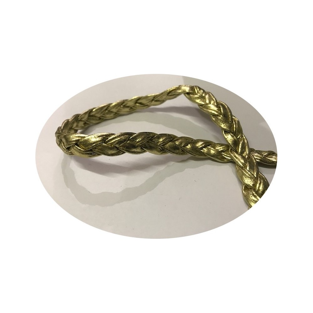 Ruban galon décoratif tressé en simili cuir couleur doré fantaisie au mètre.