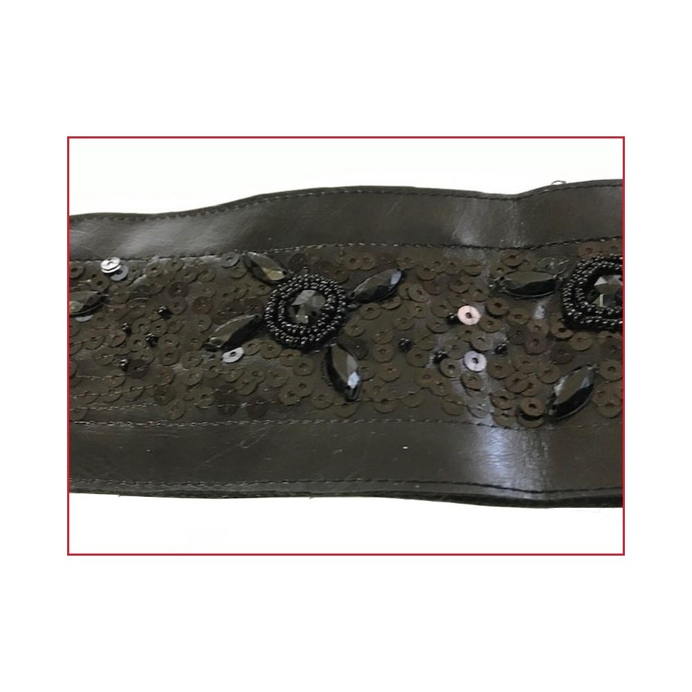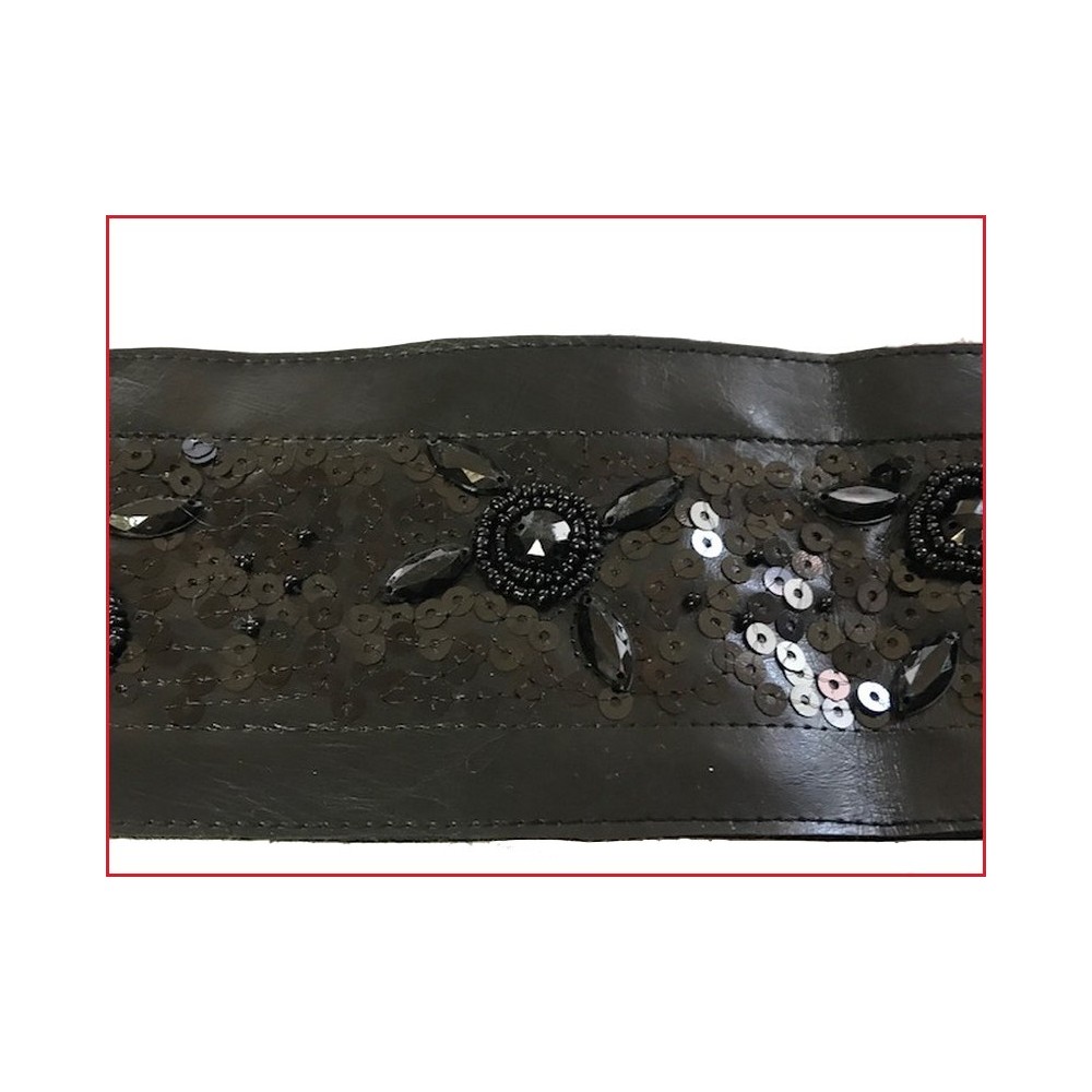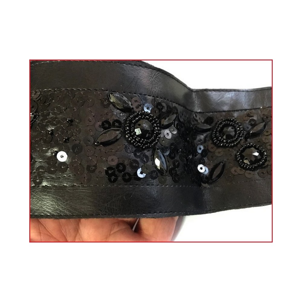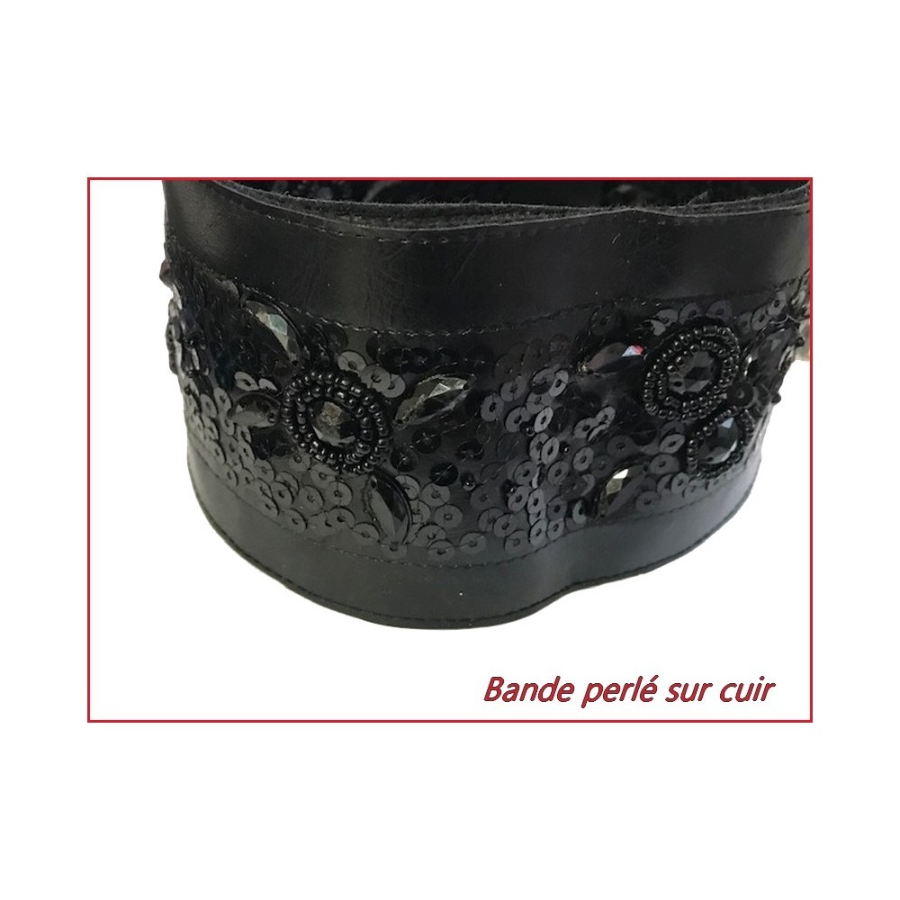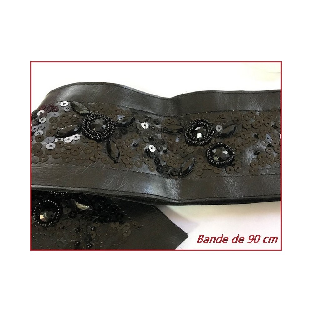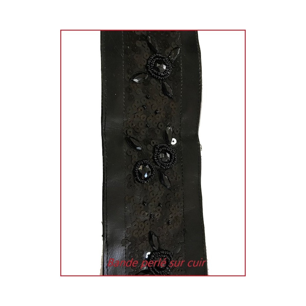 Ruban bande en simili cuir brodé et perlé en perles et motif noir à coudre