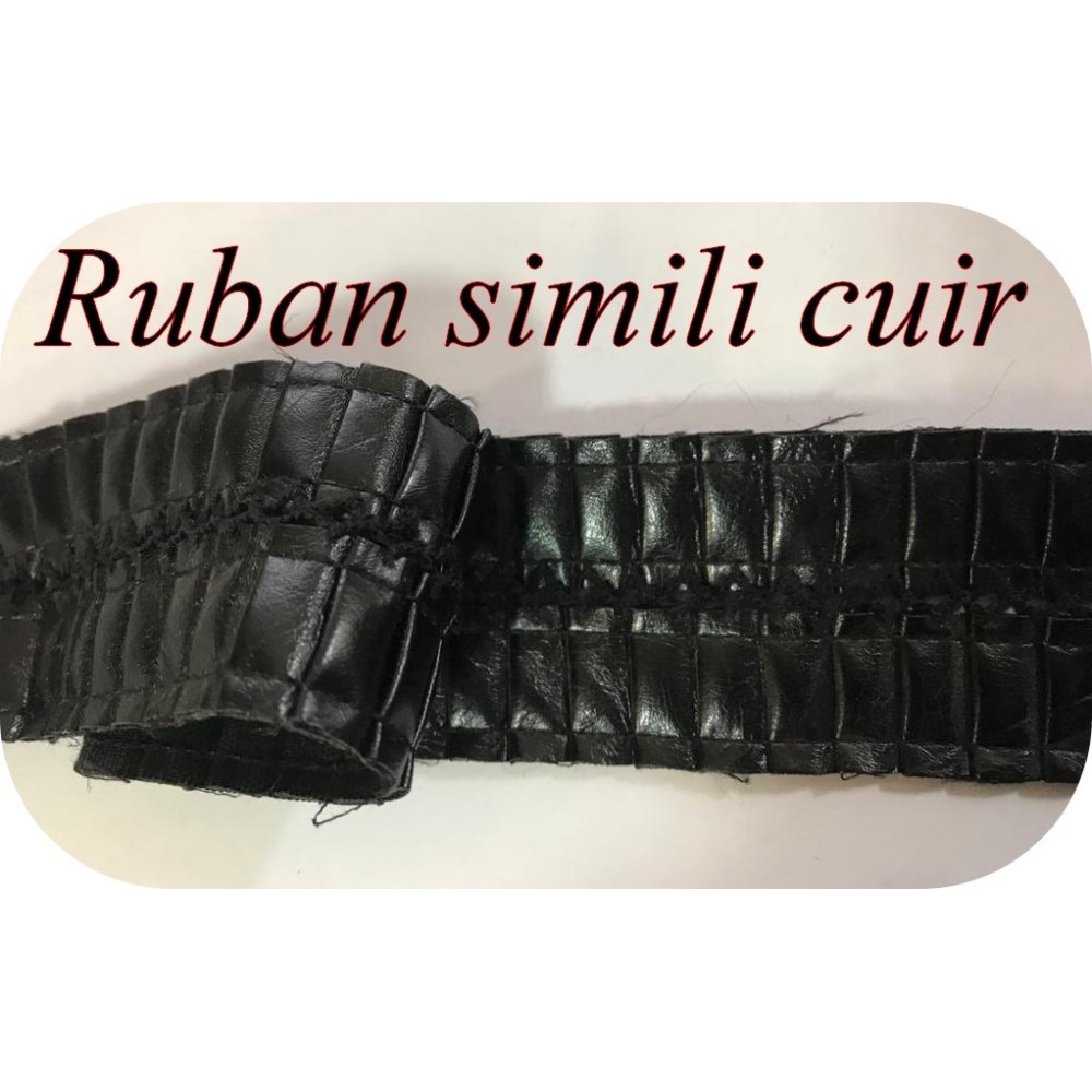 Fourniture mercerie ruban en broderie en imitation cuir noir mat fantaisie pour habillement et lingerie.