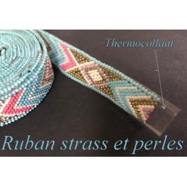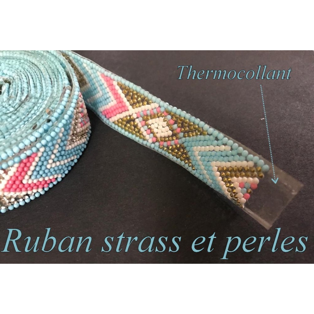 Ruban galon thermocollant au mètre certi de strass et de perles ajouré.