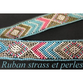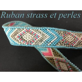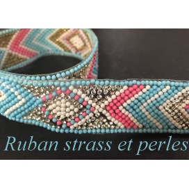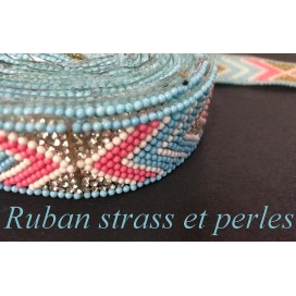 Ruban galon au mètre certi de strass et de perles ajouré.