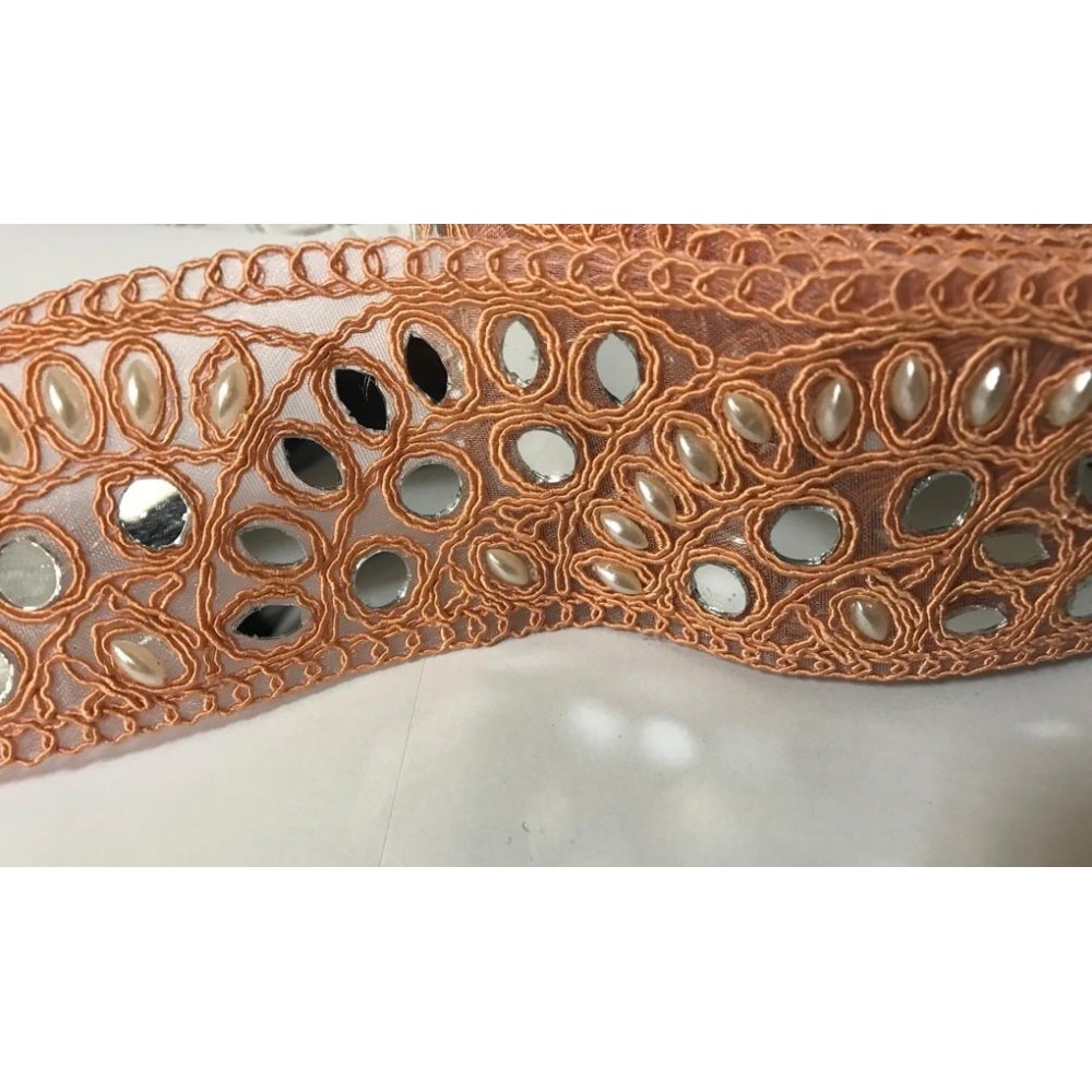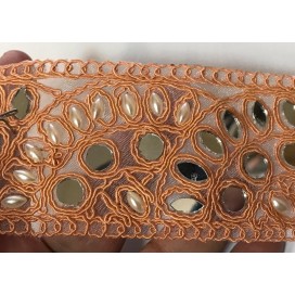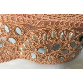 Avec un Ruban brodé en couleur saumon orné de perles et de petits miroirs, vous pouvez créer une variété de décorations, personnaliser des caftans et réaliser des customisations élégantes. Voici quelques idées de ce que vous pouvez faire avec ce ruban :