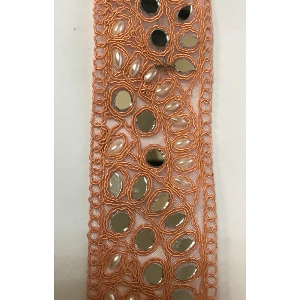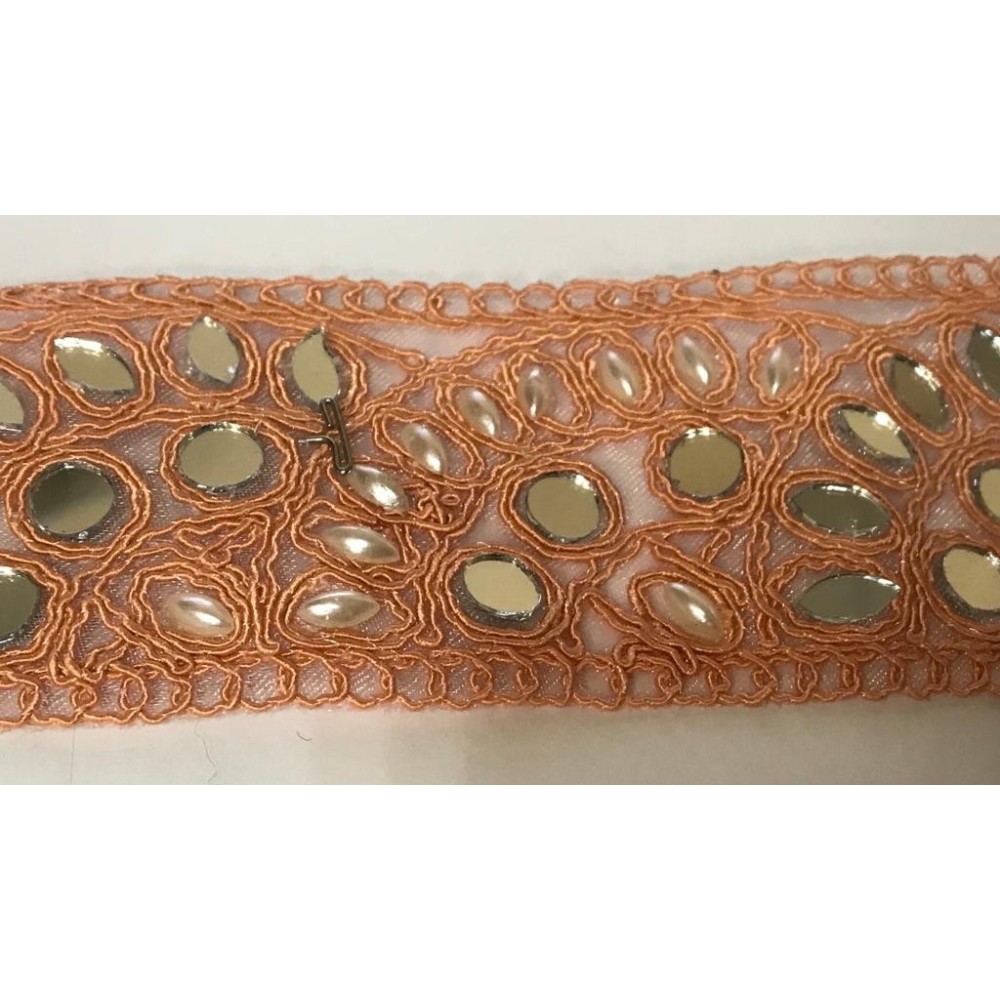 Ce ruban brodé saumon, orné de perles et de miroirs, est un choix élégant pour vos projets de décoration. Que ce soit pour agrémenter des caftans, rehausser vos ceintures ou créer des customisations originales, ce ruban apportera une touche de sophistication à chaque création. Les perles et les miroirs ajoutent une lueur subtile et luxueuse à vos réalisations, les transformant en pièces uniques et somptueuses.