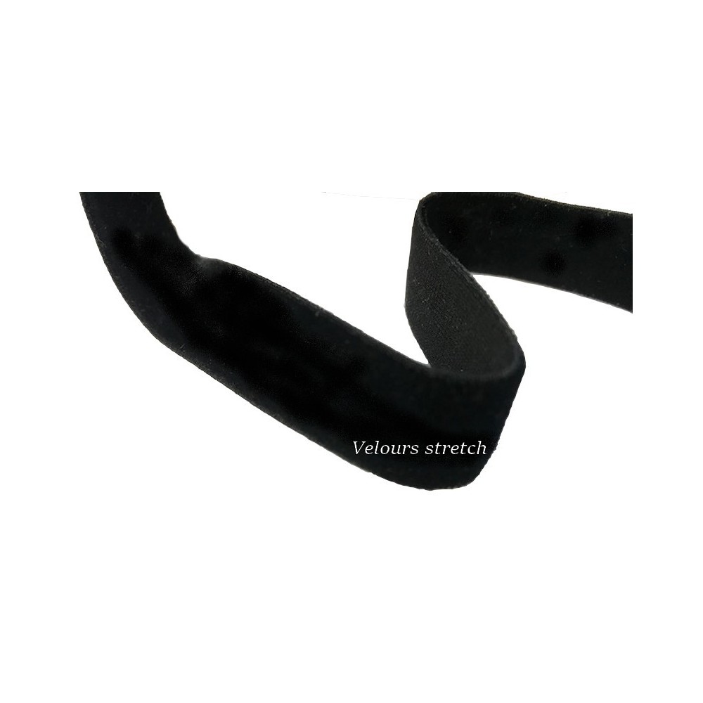 Ruban de velours lycra élastique en 16 mm de couleurs noie, pour lingerie vetements et loisirs créatifs.